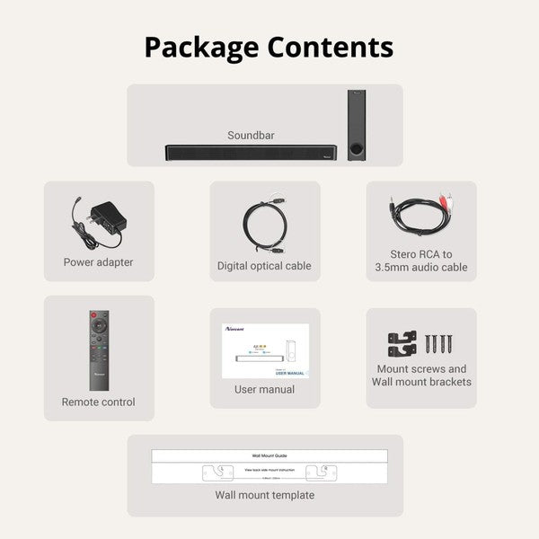 6. 5 inch WIRED SUB-WOOFER: Soundbar with a 60W subwoofer adds punch and rumble to your TV shows, action movies, or movies with epic music