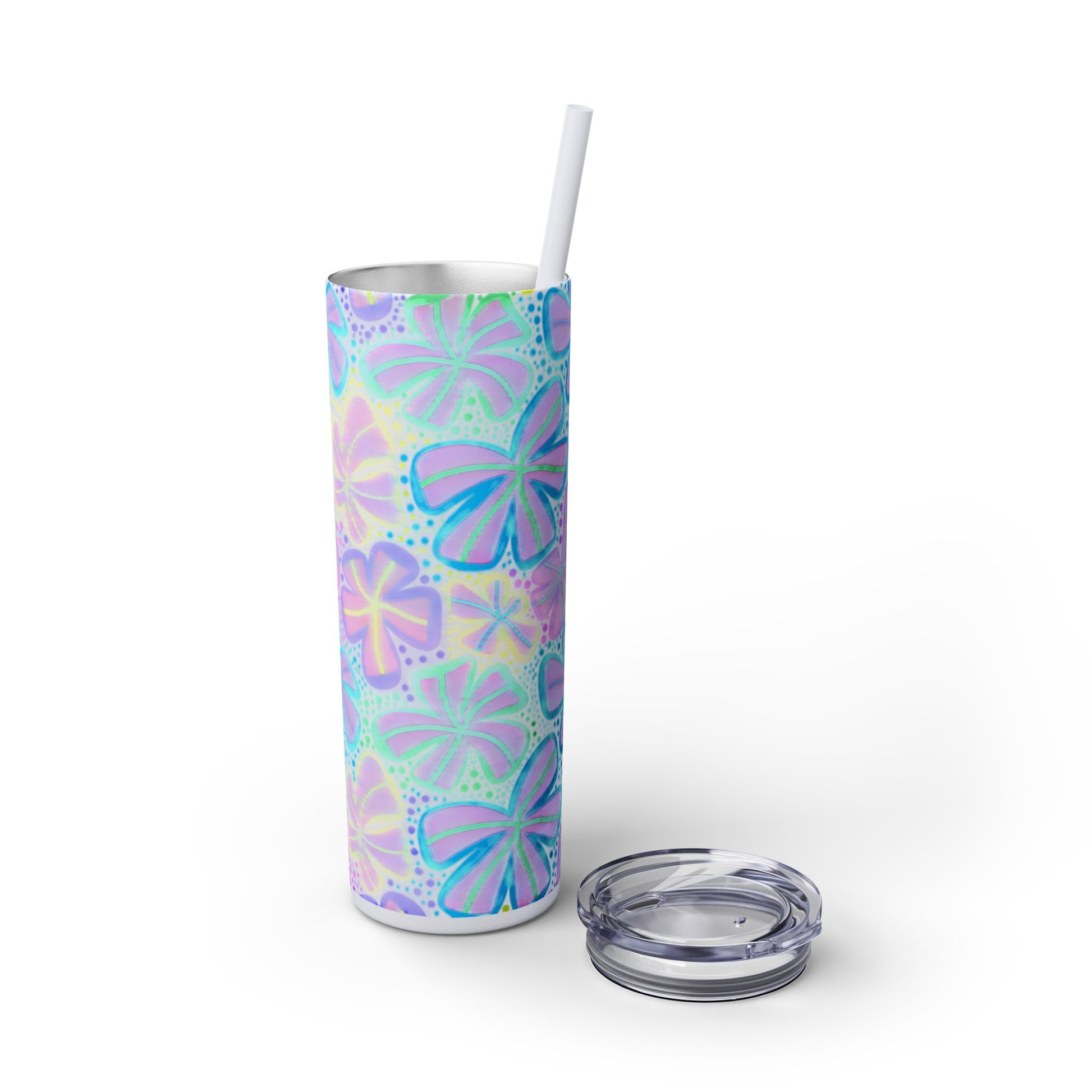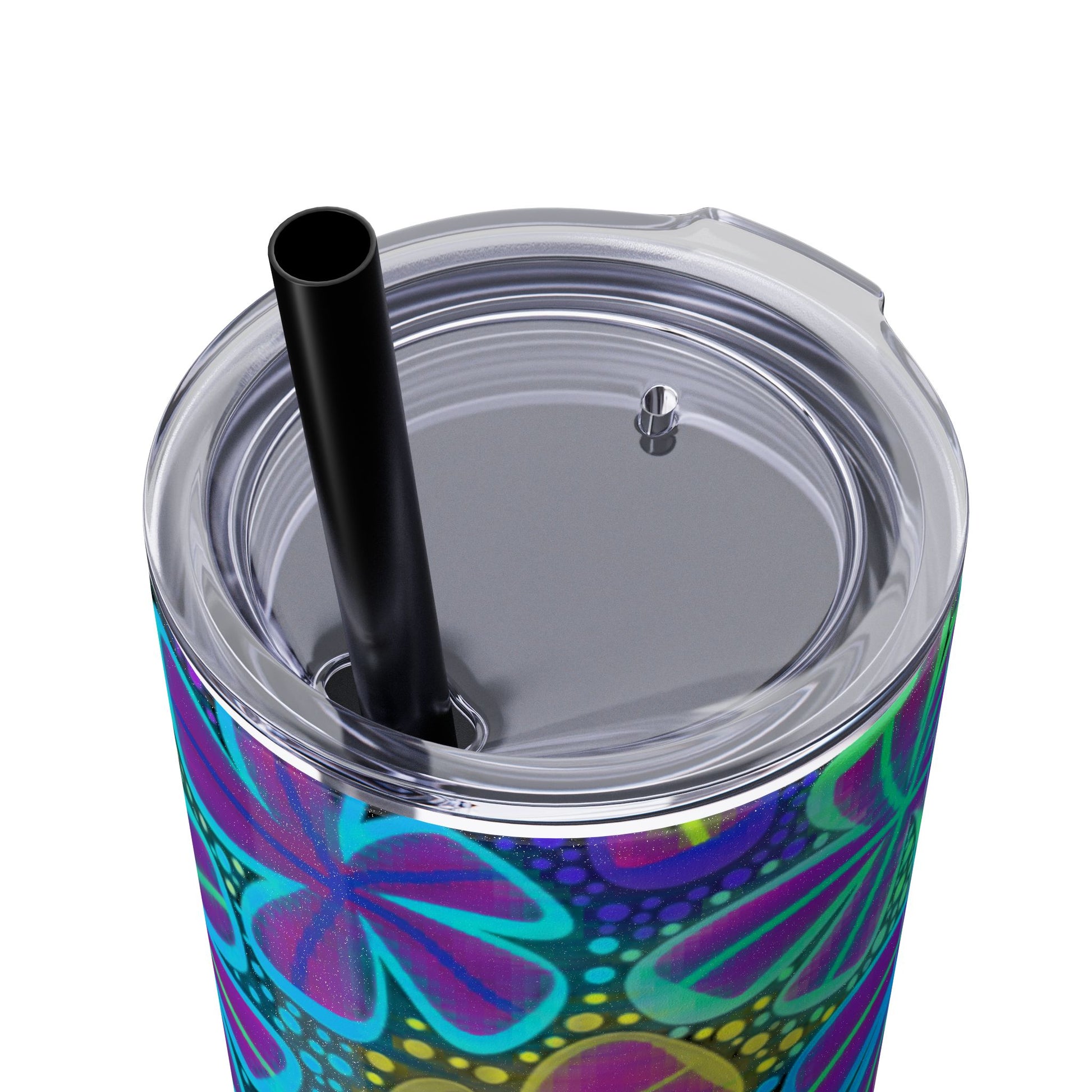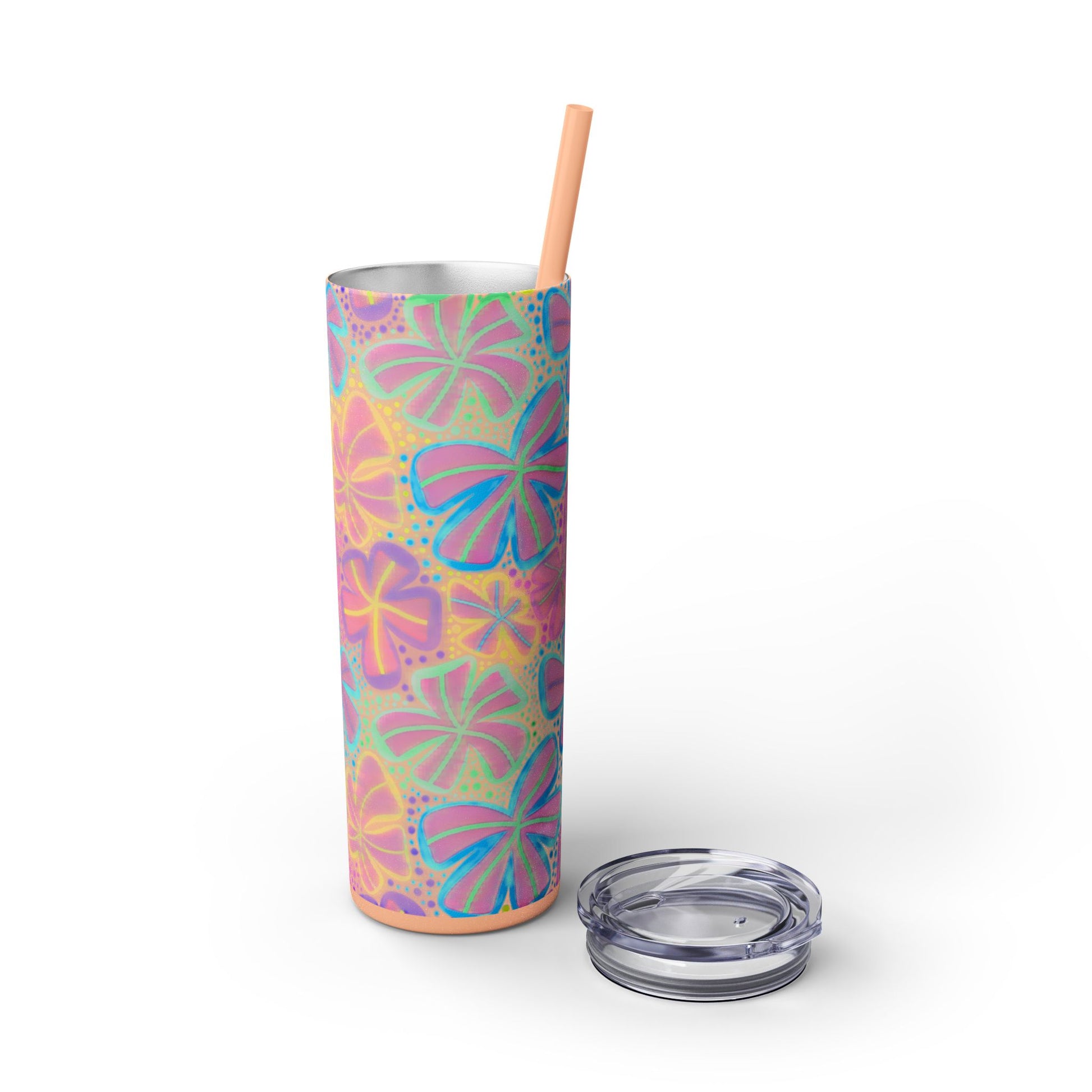 Stay hydrated in style with this vibrant Skinny Tumbler, perfect for on-the-go lifestyles. Its whimsical butterfly design adds a touch of whimsy, making it a cheerful companion for everyday use. This 20oz tumbler fits comfortably in your hand and cup holders, making it ideal for road trips, picnics, or lounging at home. Whether you’re sipping iced coffee in the summer or warm tea in the winter, enjoy drinks at the perfect temperature. Great as a gift for friends, family, or yourself, this tumbler is perfect for birthdays, holidays, and special celebrations. Bring a splash of color to your hydration routine!
