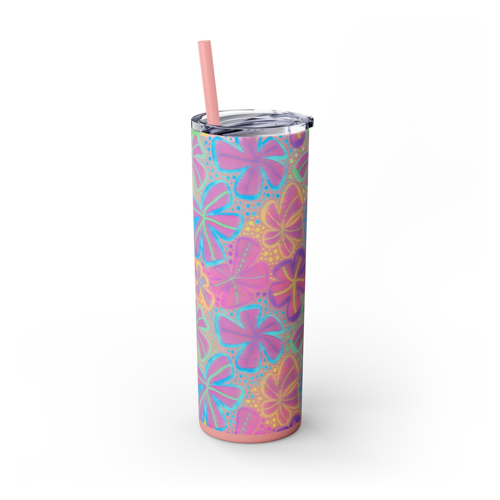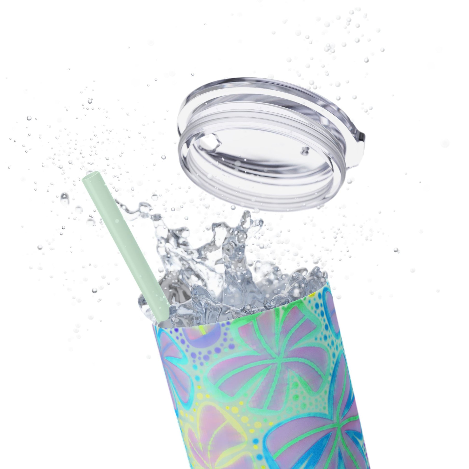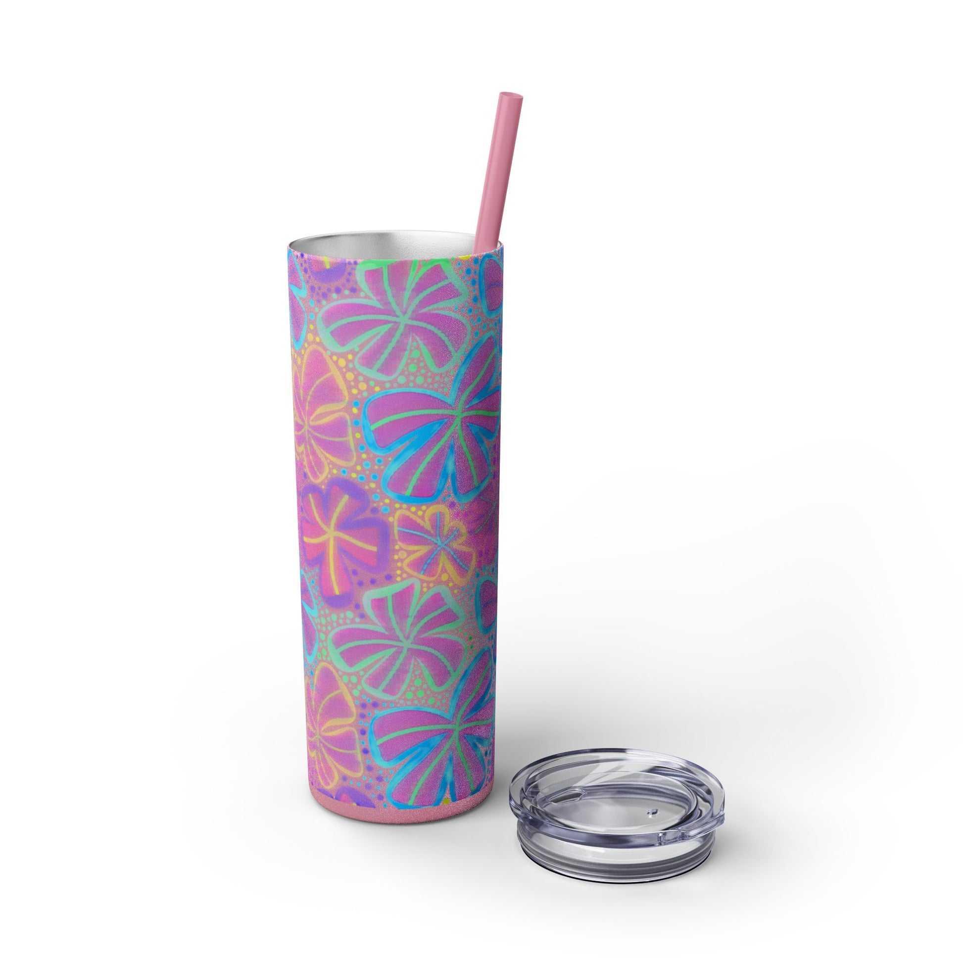 Stay hydrated in style with this vibrant Skinny Tumbler, perfect for on-the-go lifestyles. Its whimsical butterfly design adds a touch of whimsy, making it a cheerful companion for everyday use. This 20oz tumbler fits comfortably in your hand and cup holders, making it ideal for road trips, picnics, or lounging at home. Whether you’re sipping iced coffee in the summer or warm tea in the winter, enjoy drinks at the perfect temperature. Great as a gift for friends, family, or yourself, this tumbler is perfect for birthdays, holidays, and special celebrations. Bring a splash of color to your hydration routine!