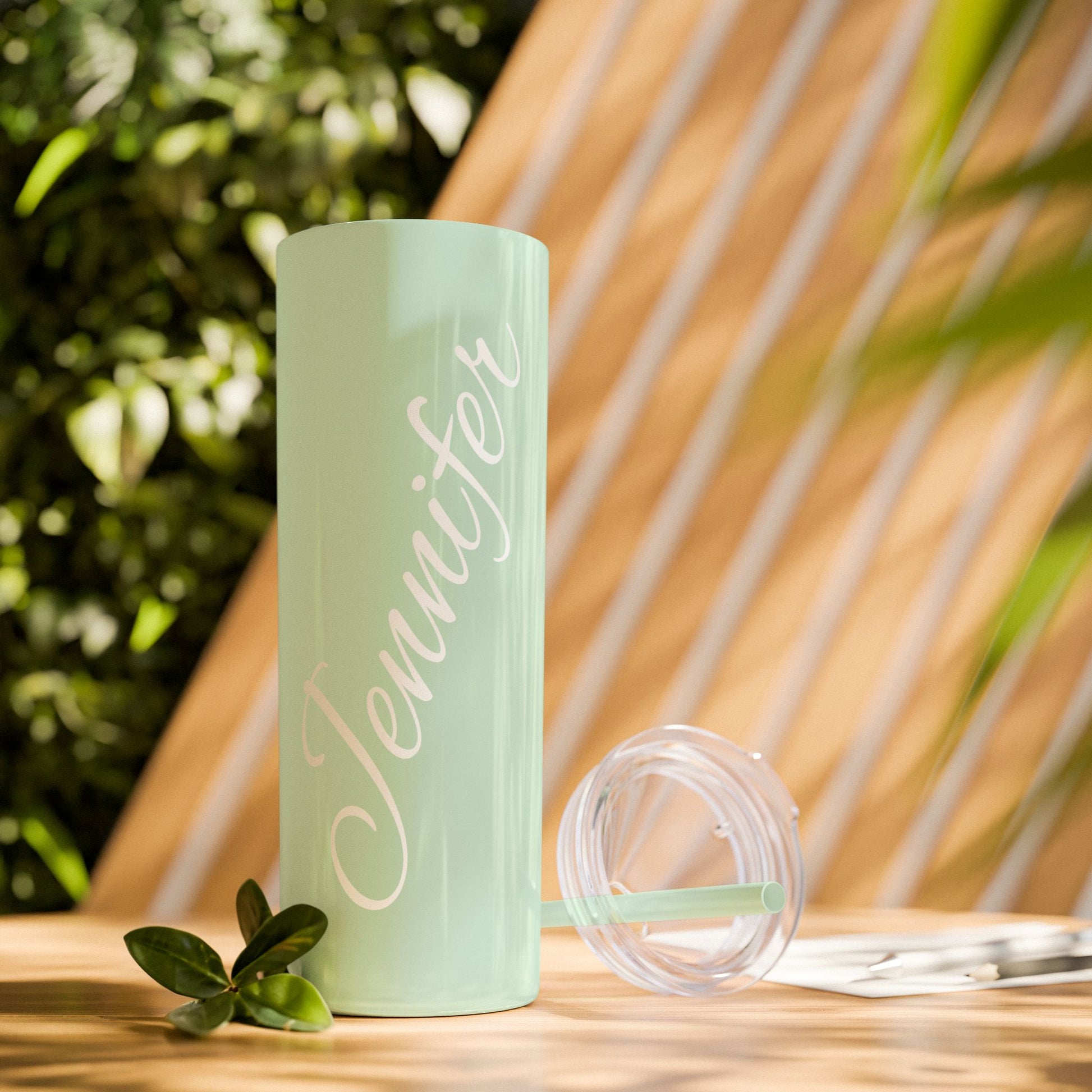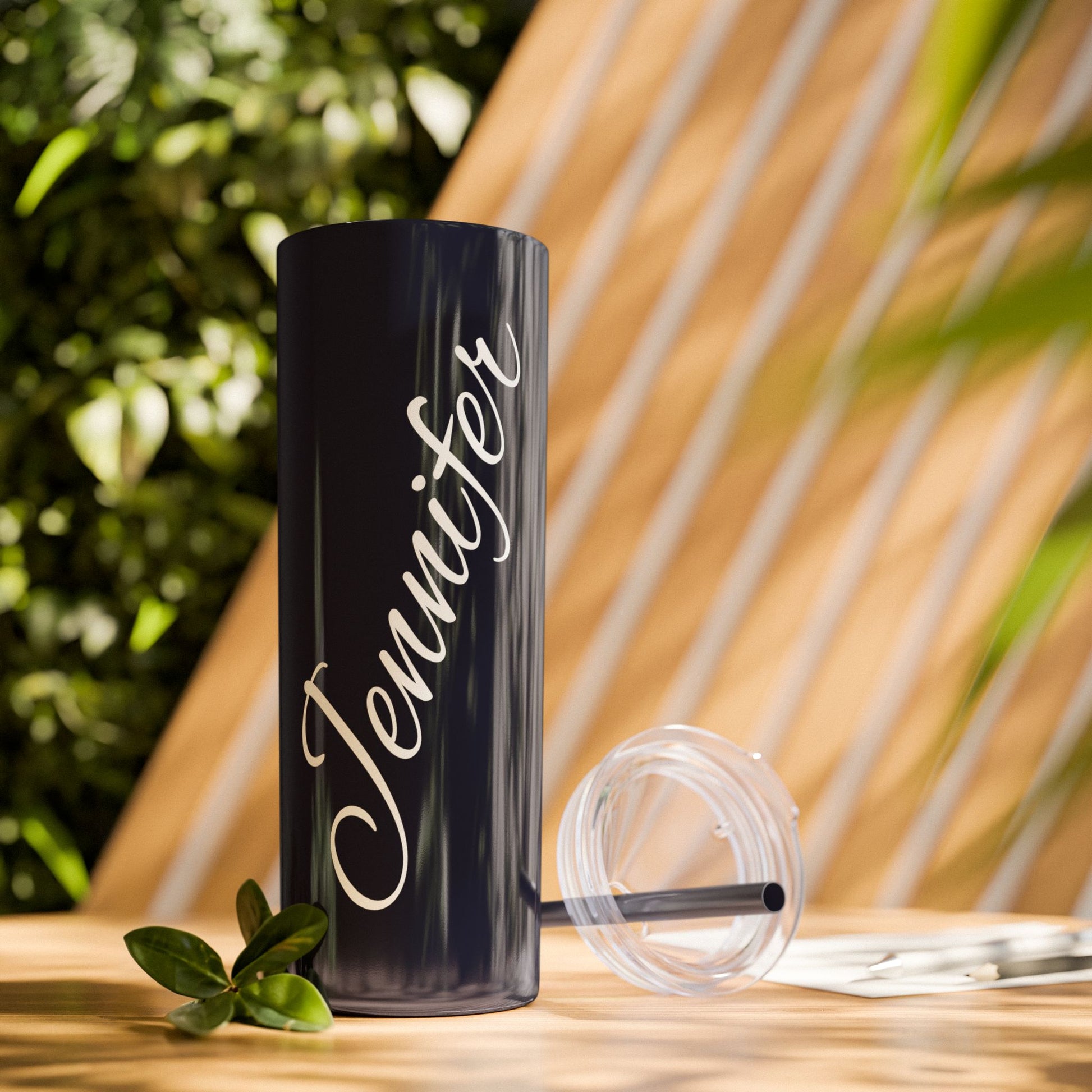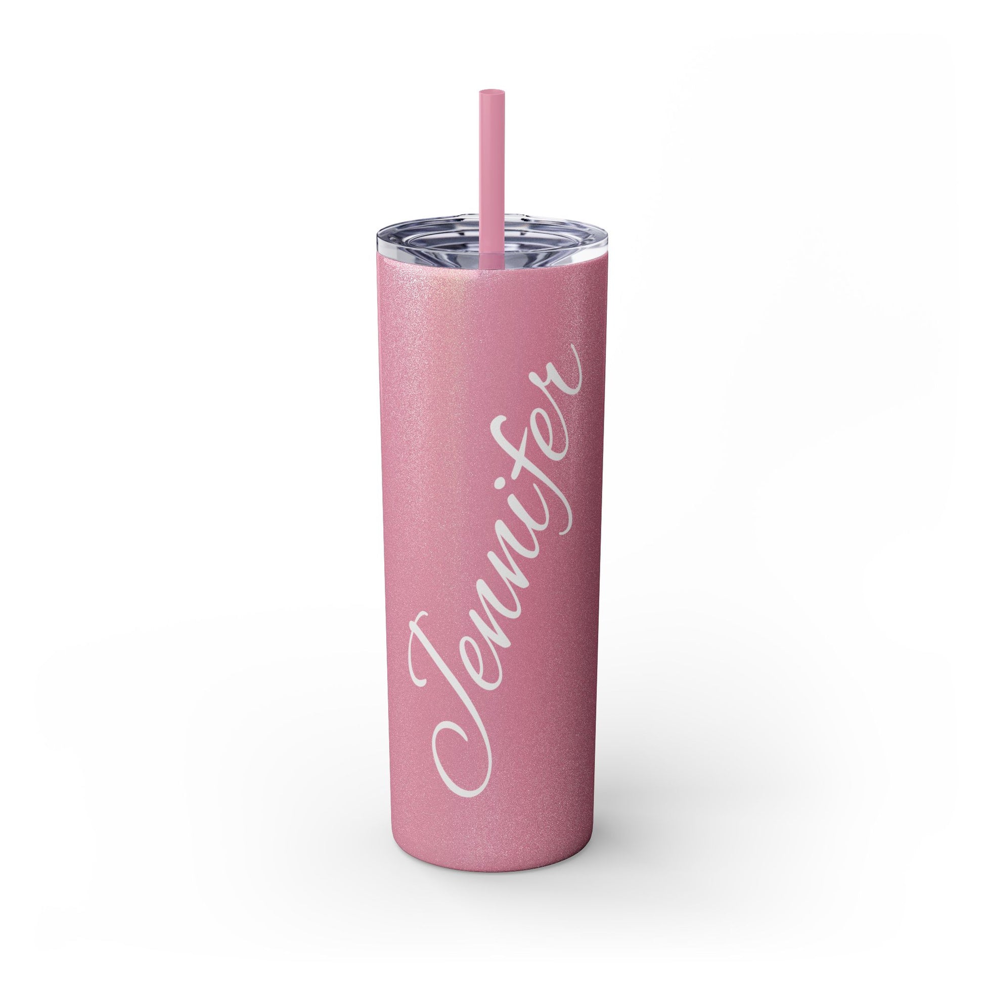 Personalized Skinny Tumbler 20oz – Coral Pink Name Tumbler (Jennifer) with Straw