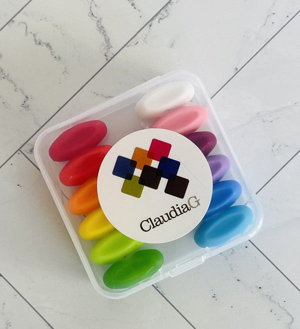 Help your guests keep tabs on their drinks with this colorful set of 12 assorted silicone glass markers. Adjusts to most tall wine glasses. Glasses not included.