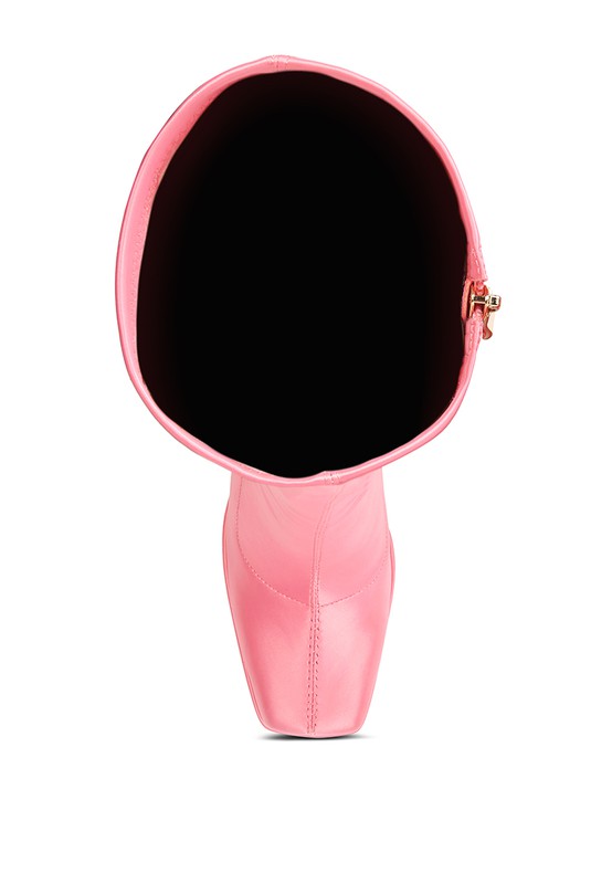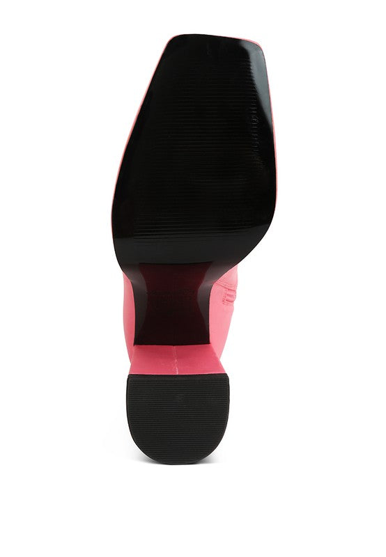Strectchable Satin Knee High boot is a gorgeous winter style boot. It has side zipper detail which makes it easy to wear. The high block heeled square cut long boot is made in great craftsmanship and finish.