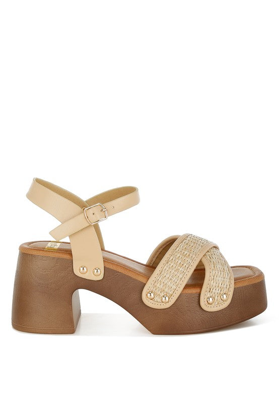 Qasa Studded Raffia Clog Sandals