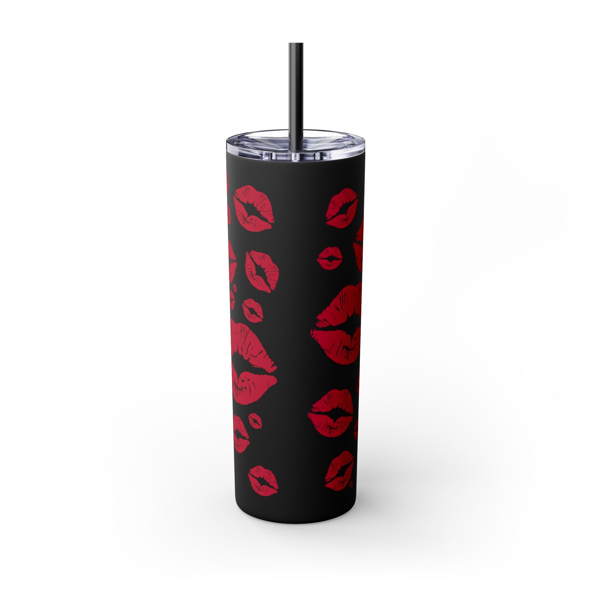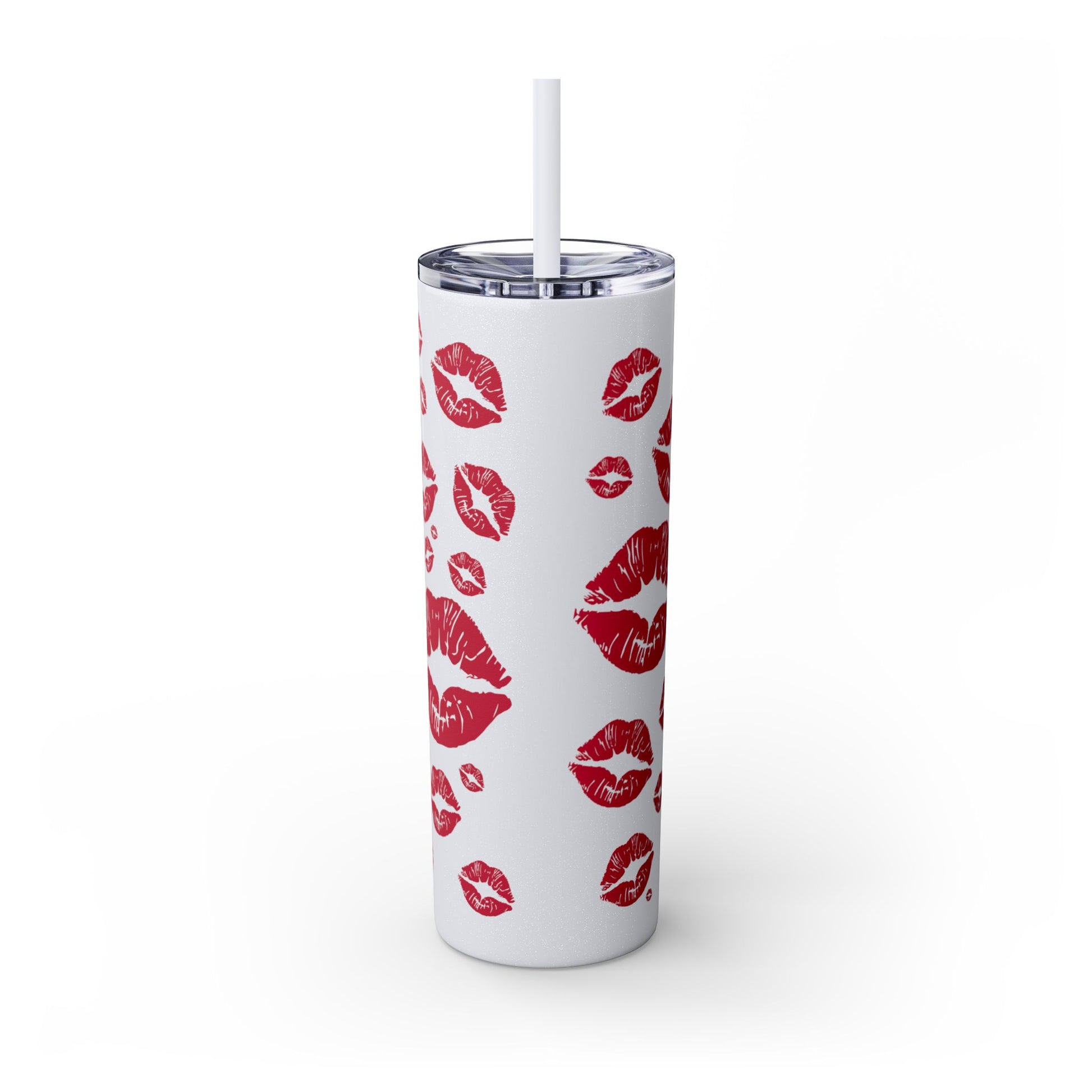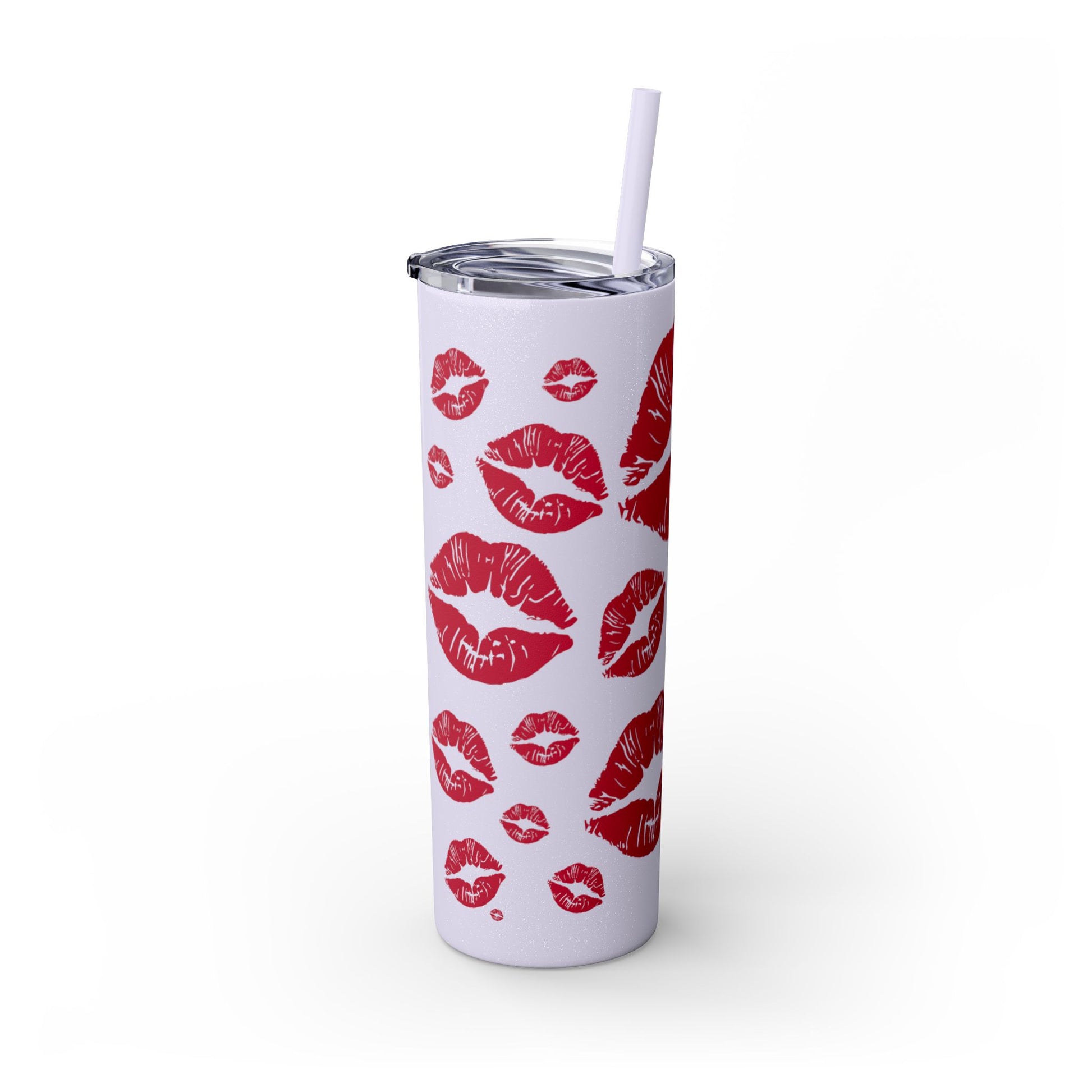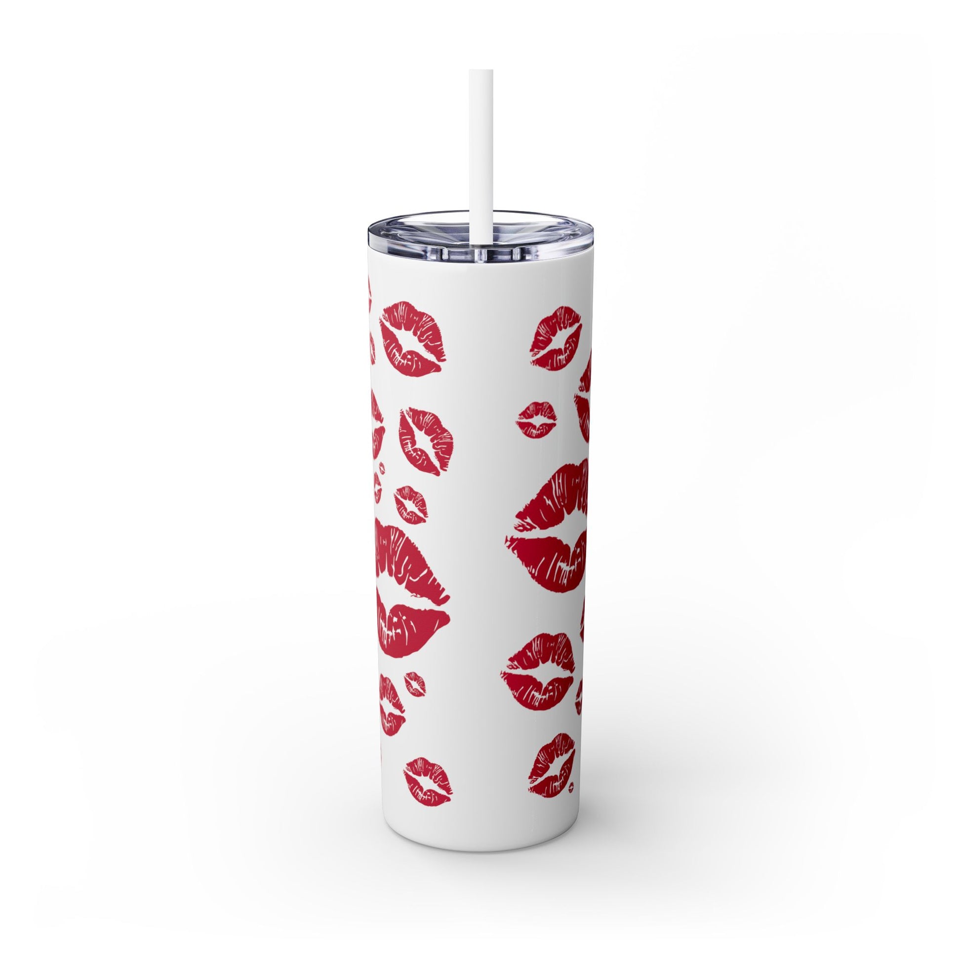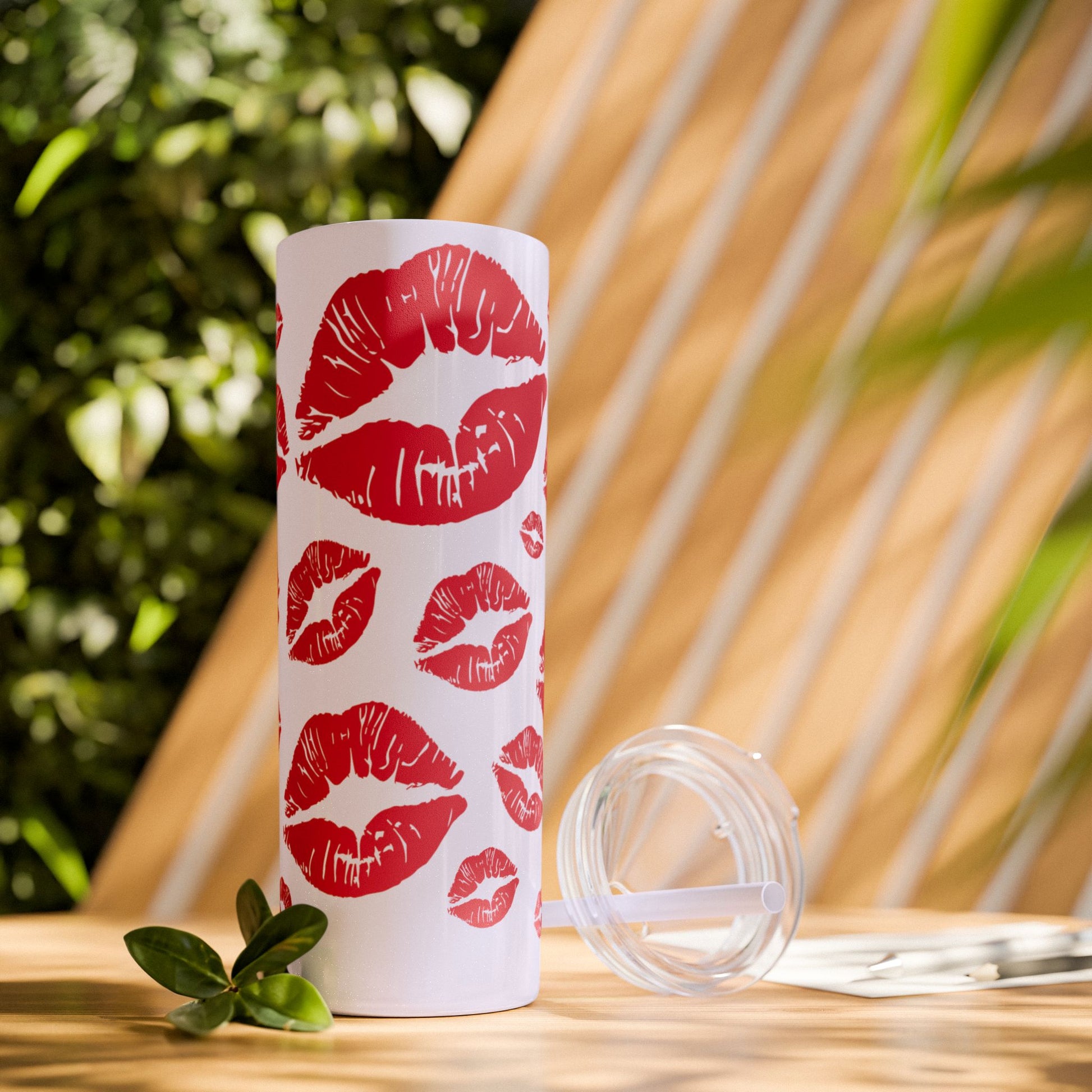 Red Lips Kiss Mark Skinny Tumbler, 20oz | Kiss Print Drinkware | Cute Gift for Her | Travel Mug | Valentine's Day, Wedding Favor