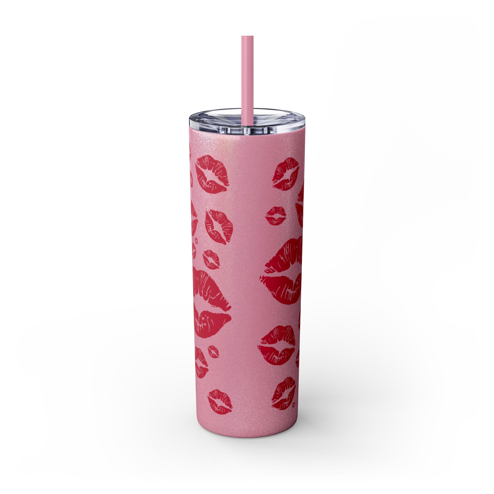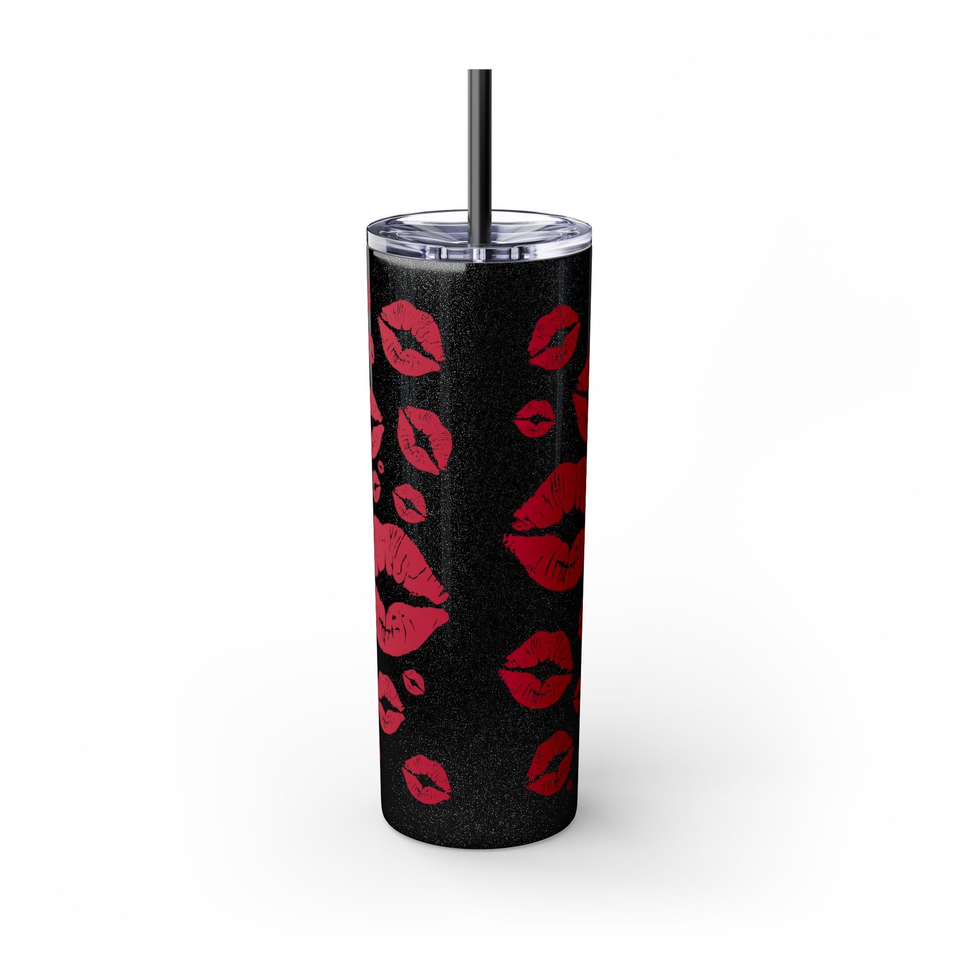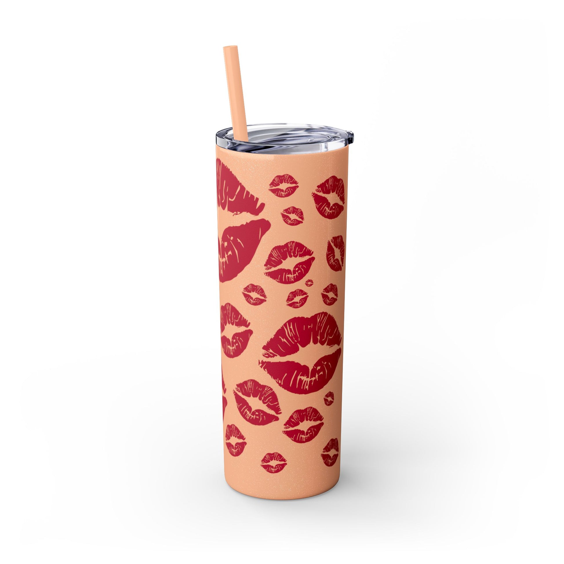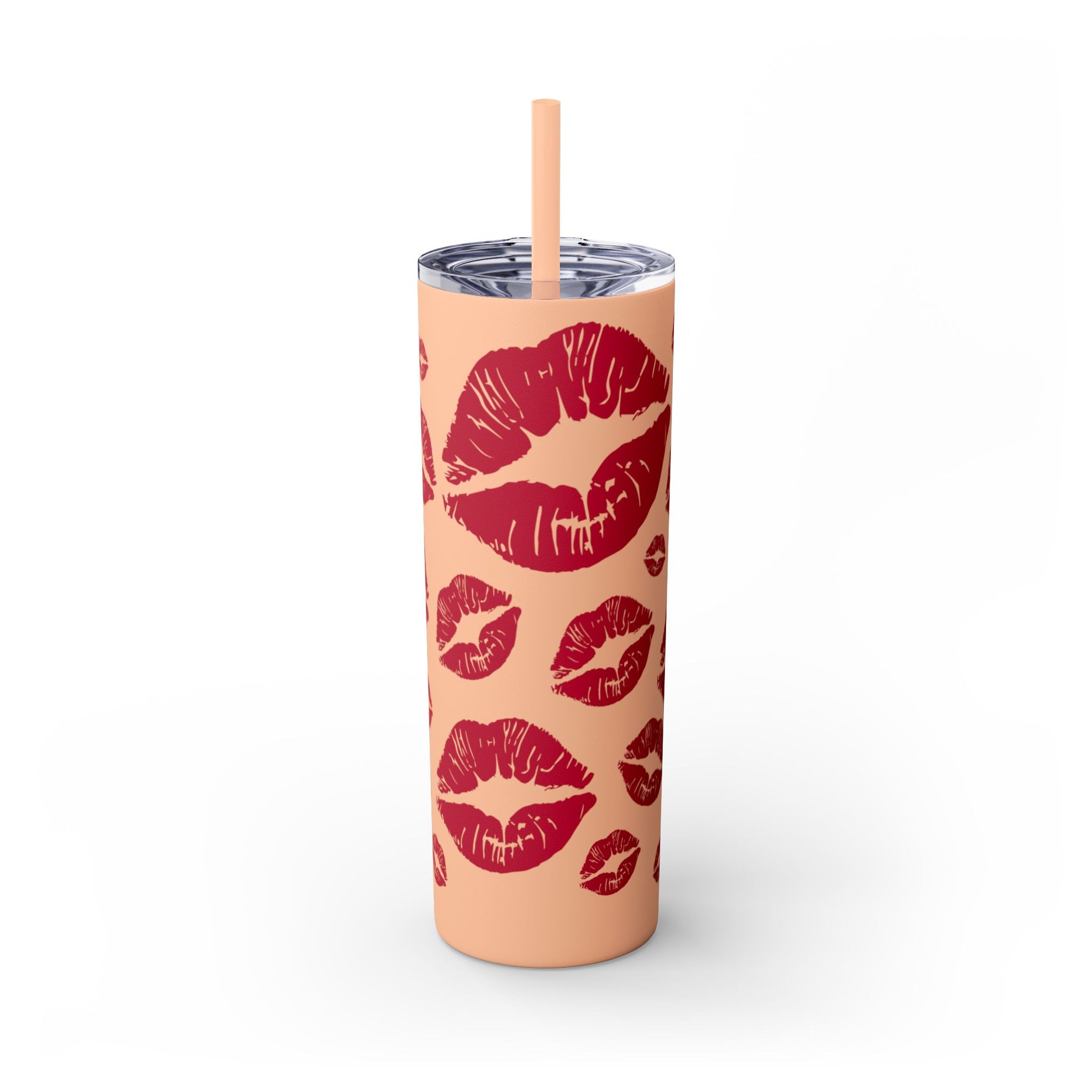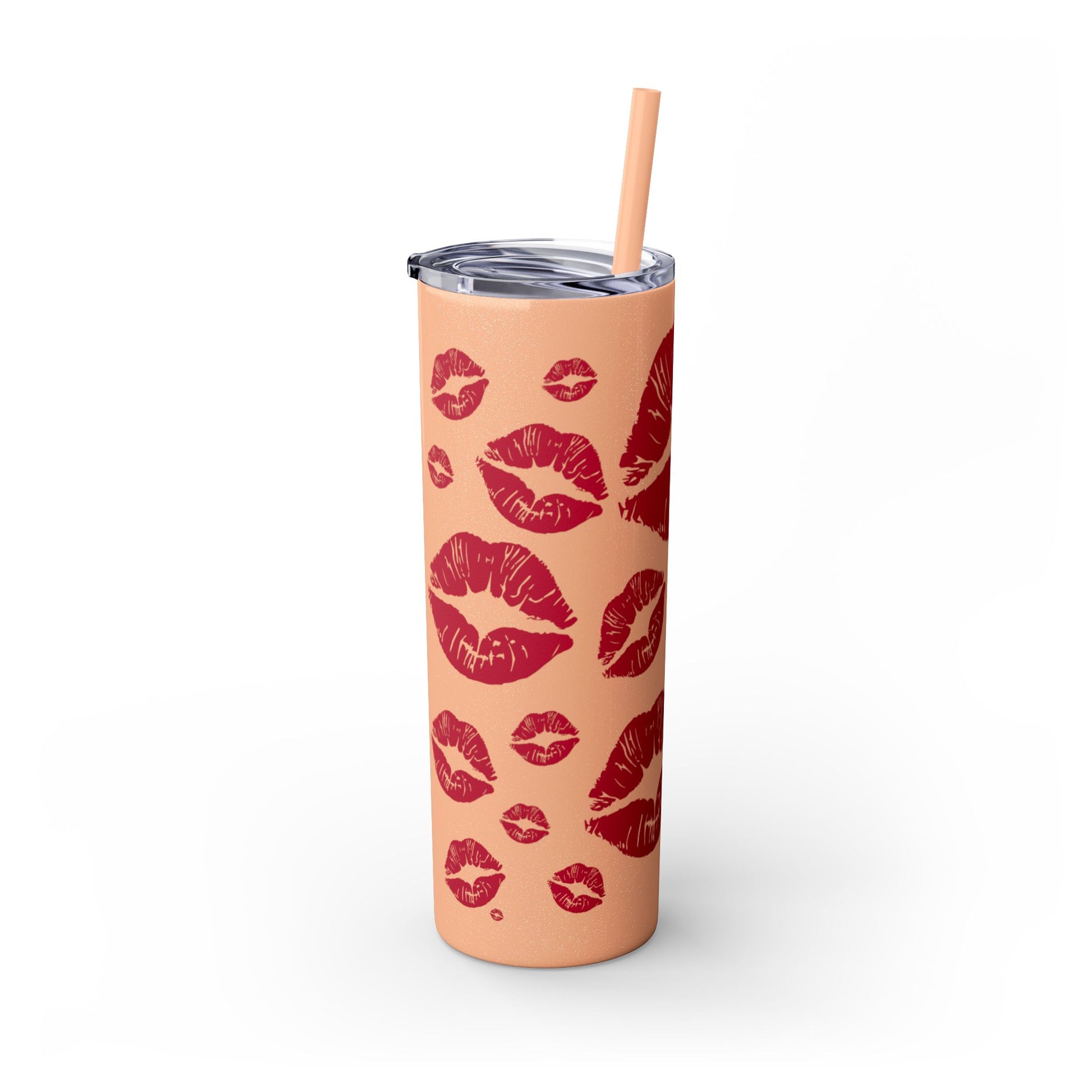 Red Lips Kiss Mark Skinny Tumbler, 20oz | Kiss Print Drinkware | Cute Gift for Her | Travel Mug | Valentine's Day, Wedding Favor