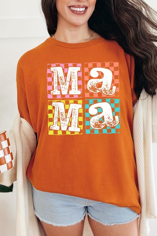 Retro Checkered Mama Graphic Heavy Cotton Tee.