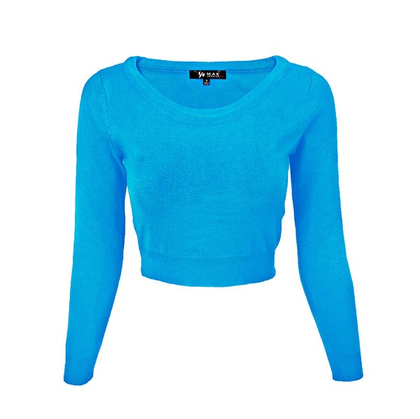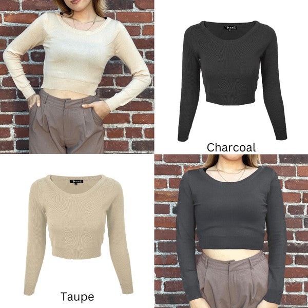 Round Neck Long Slv Crop Sweater Knit Crop Top