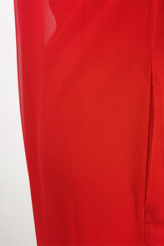 Sexy summer jumpsuit, sleeveless round neckline with back button , chiffon style side pocket, wide leg style pants