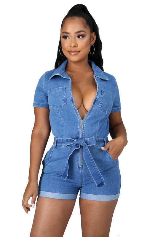 Sexy summer rompers, short sleeves ,V-neckline ,front zipper up, side pocket sexy look hot short