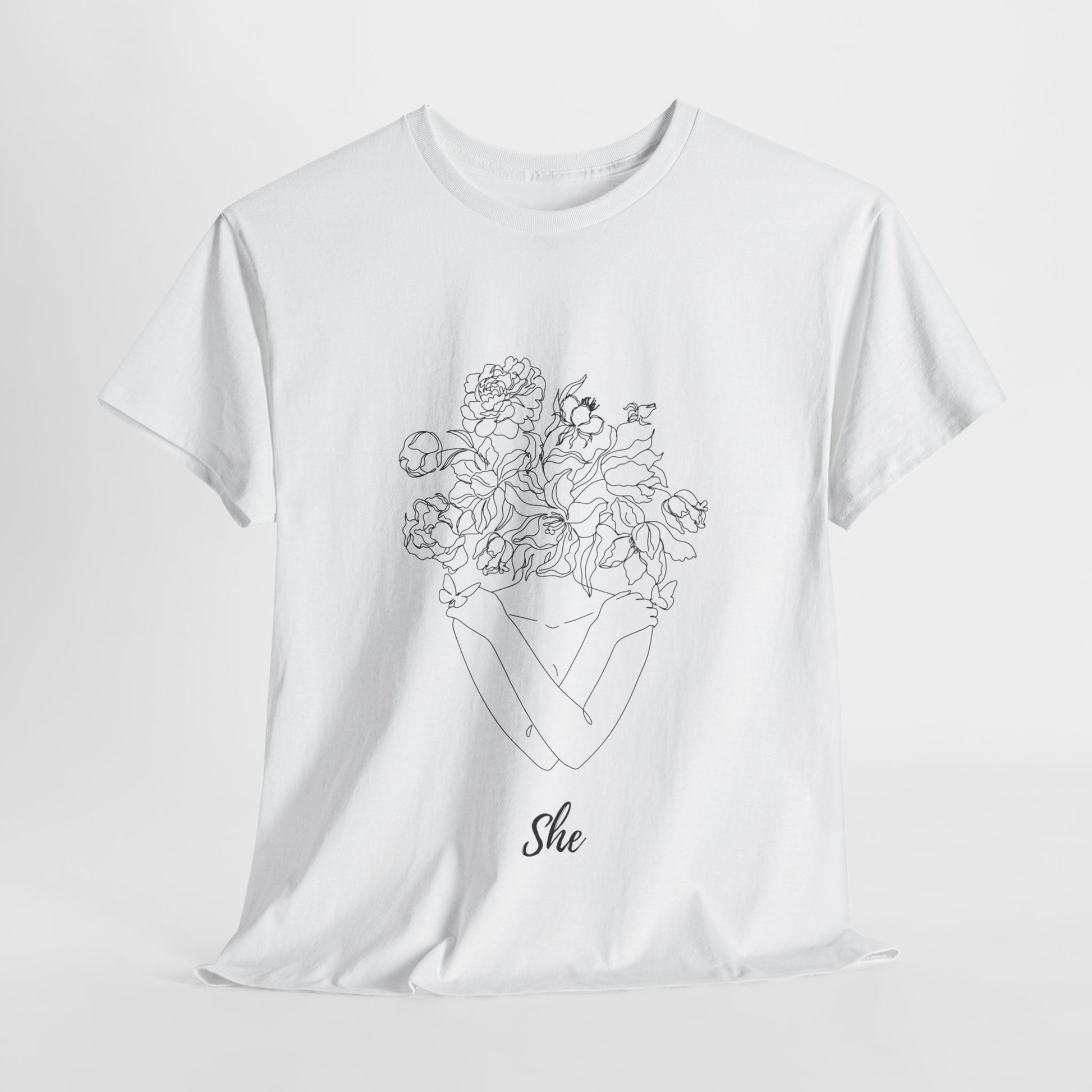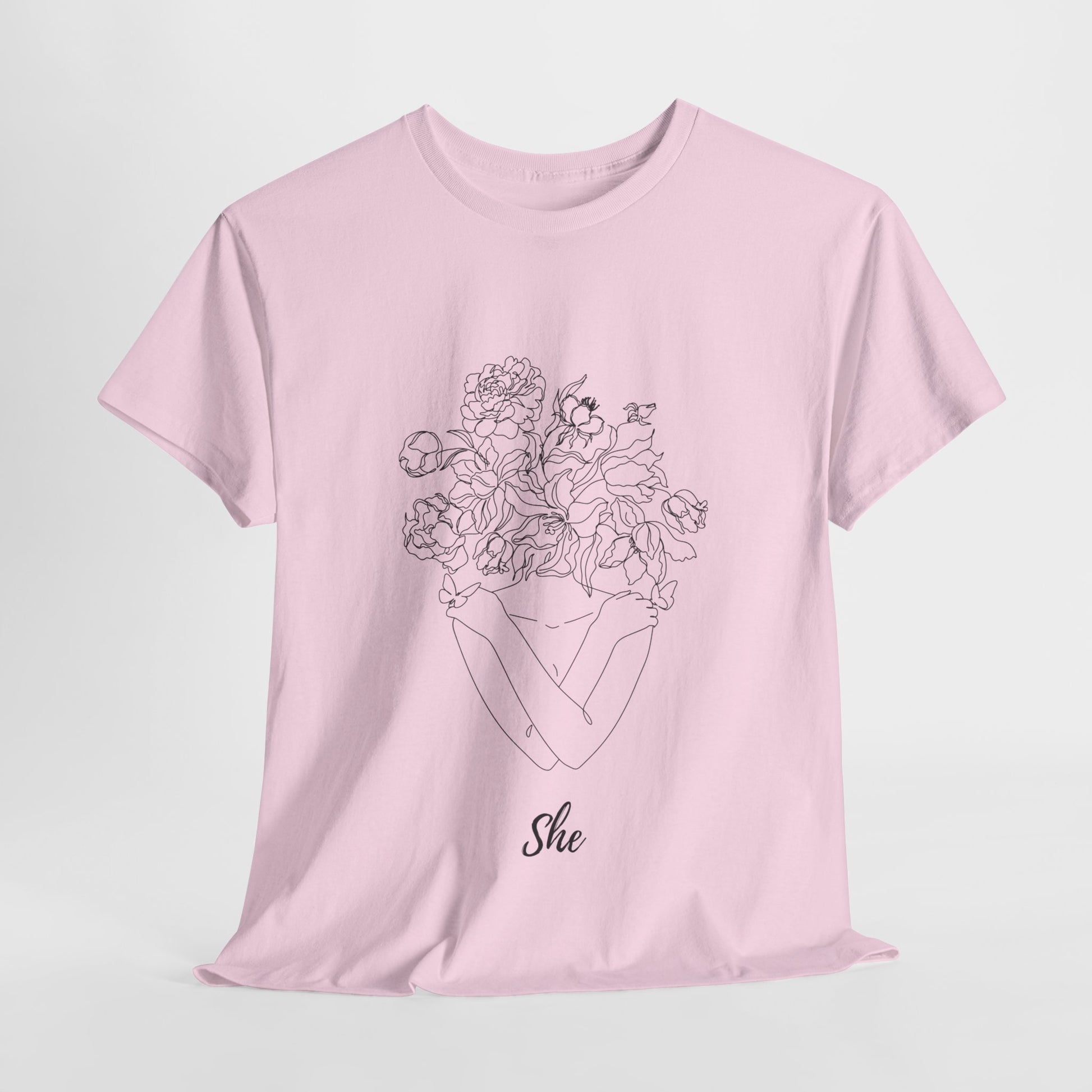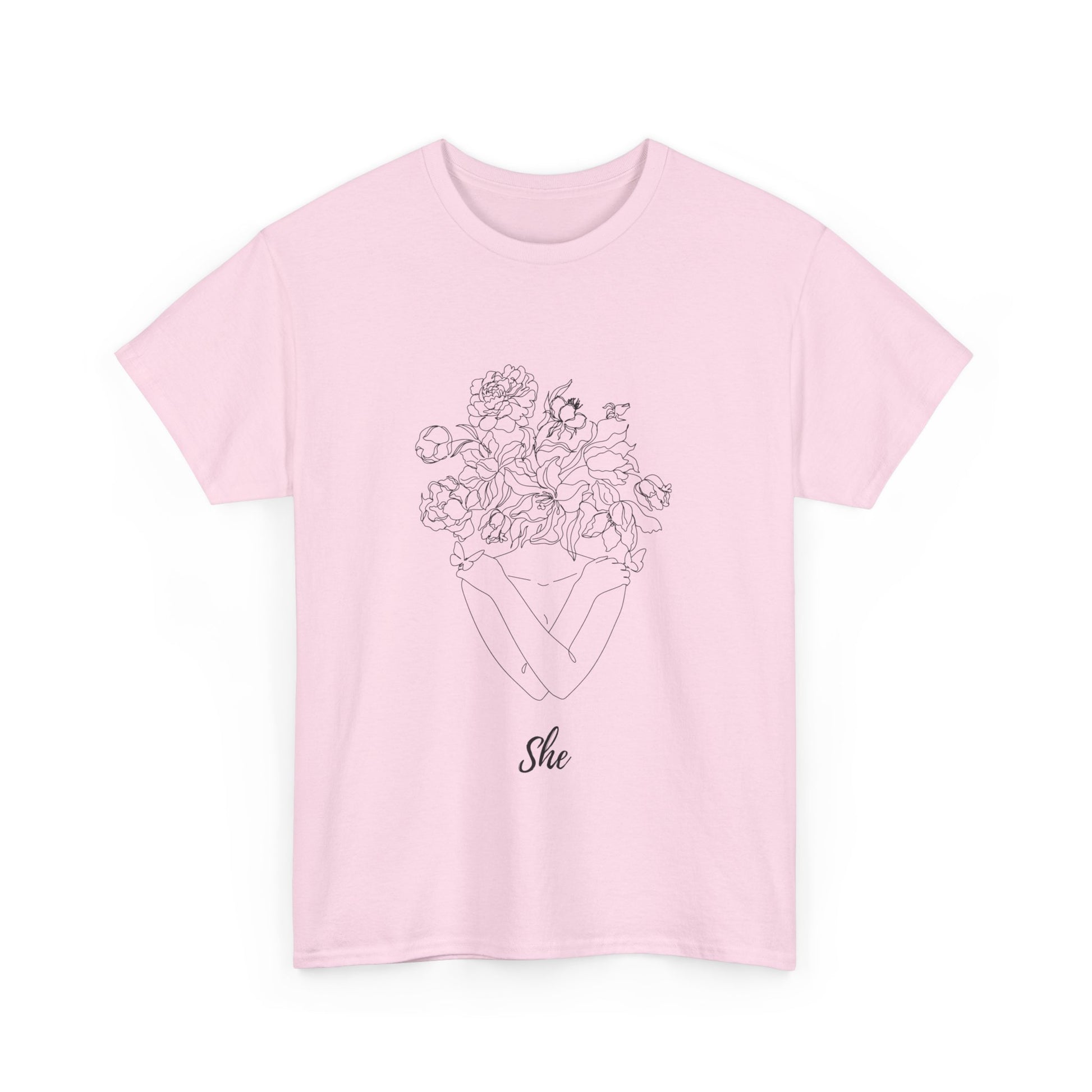 SHE Floral Love Unisex Heavy Cotton Tee, Casual T-Shirt, Gift for Her, Summer Fashion, Relaxed Fit Tee