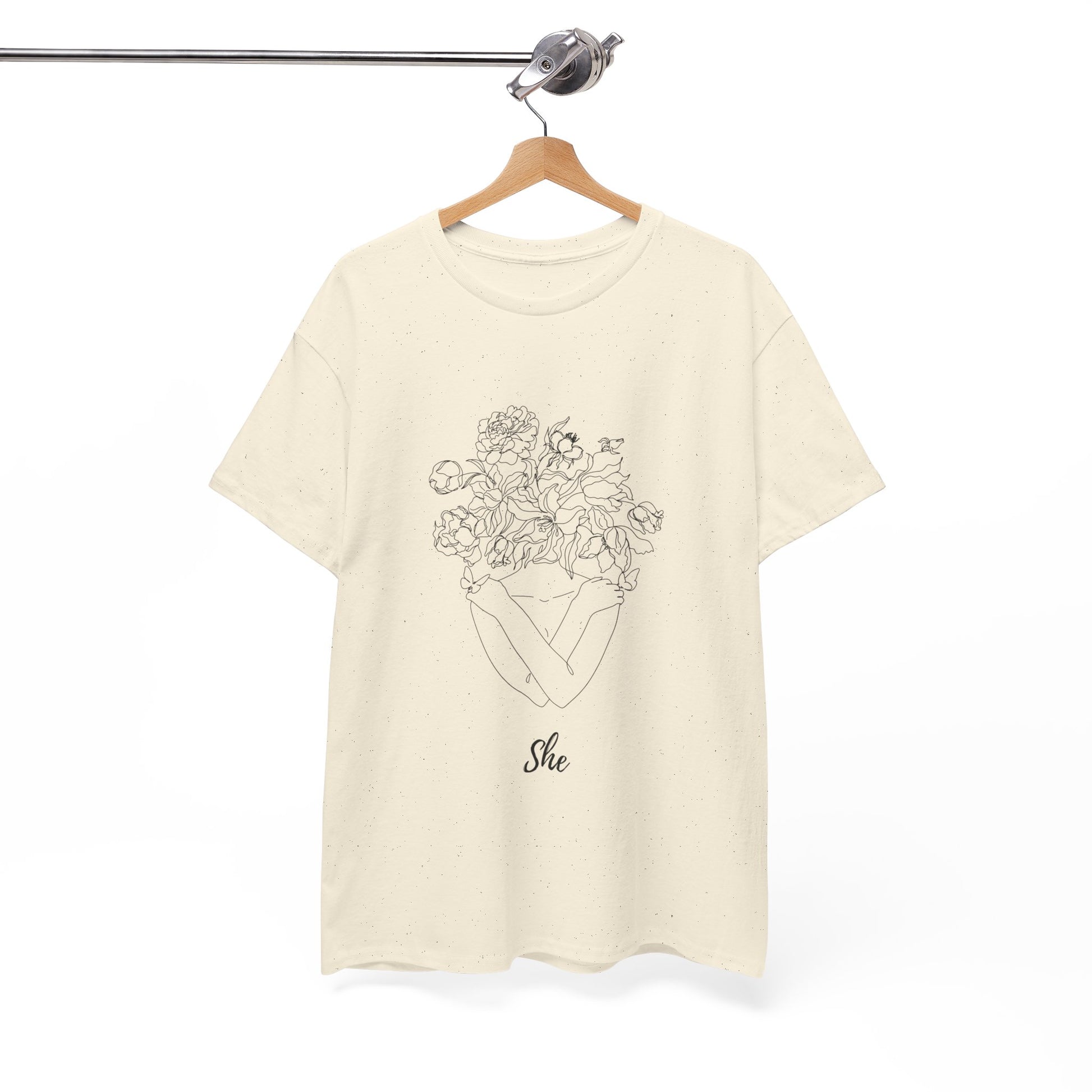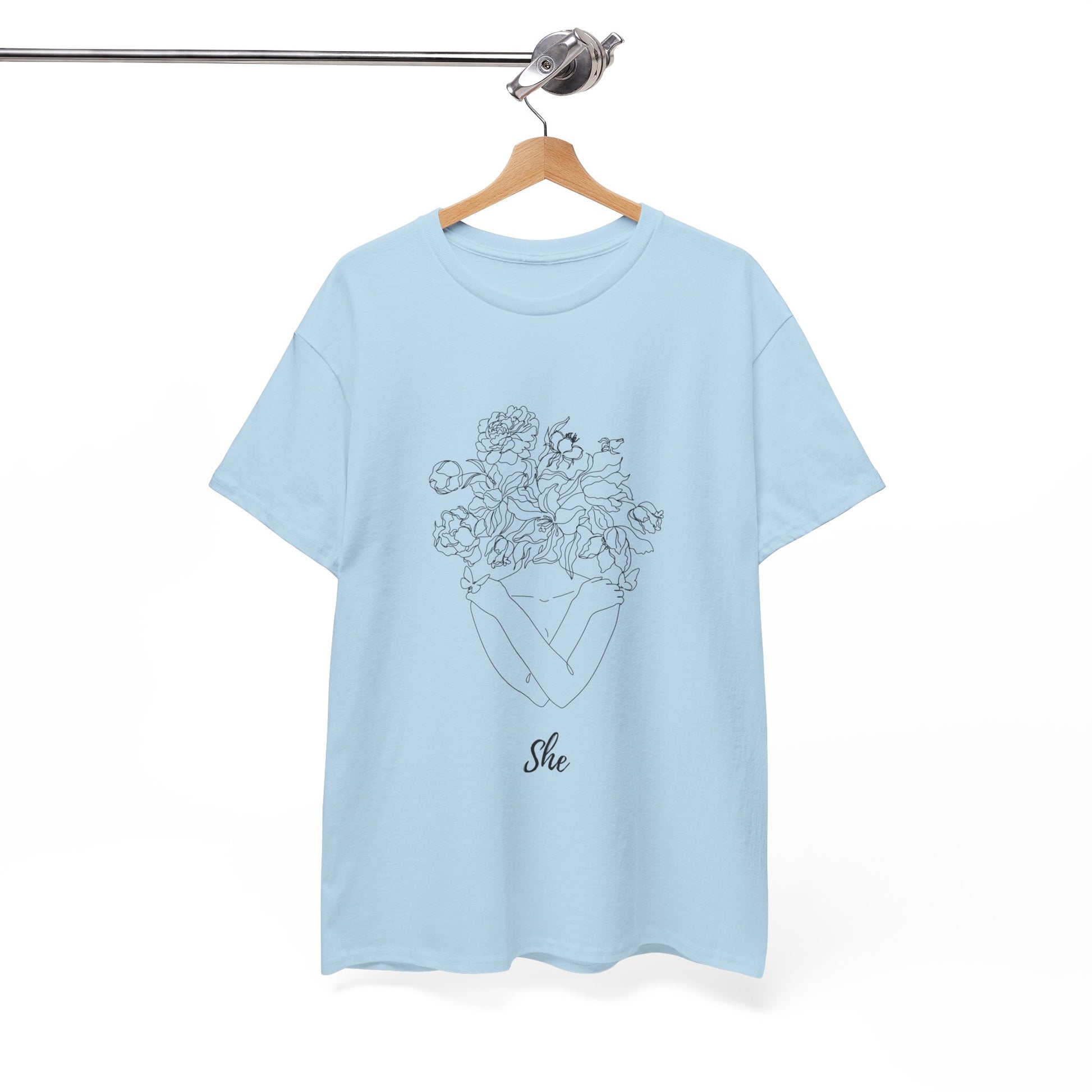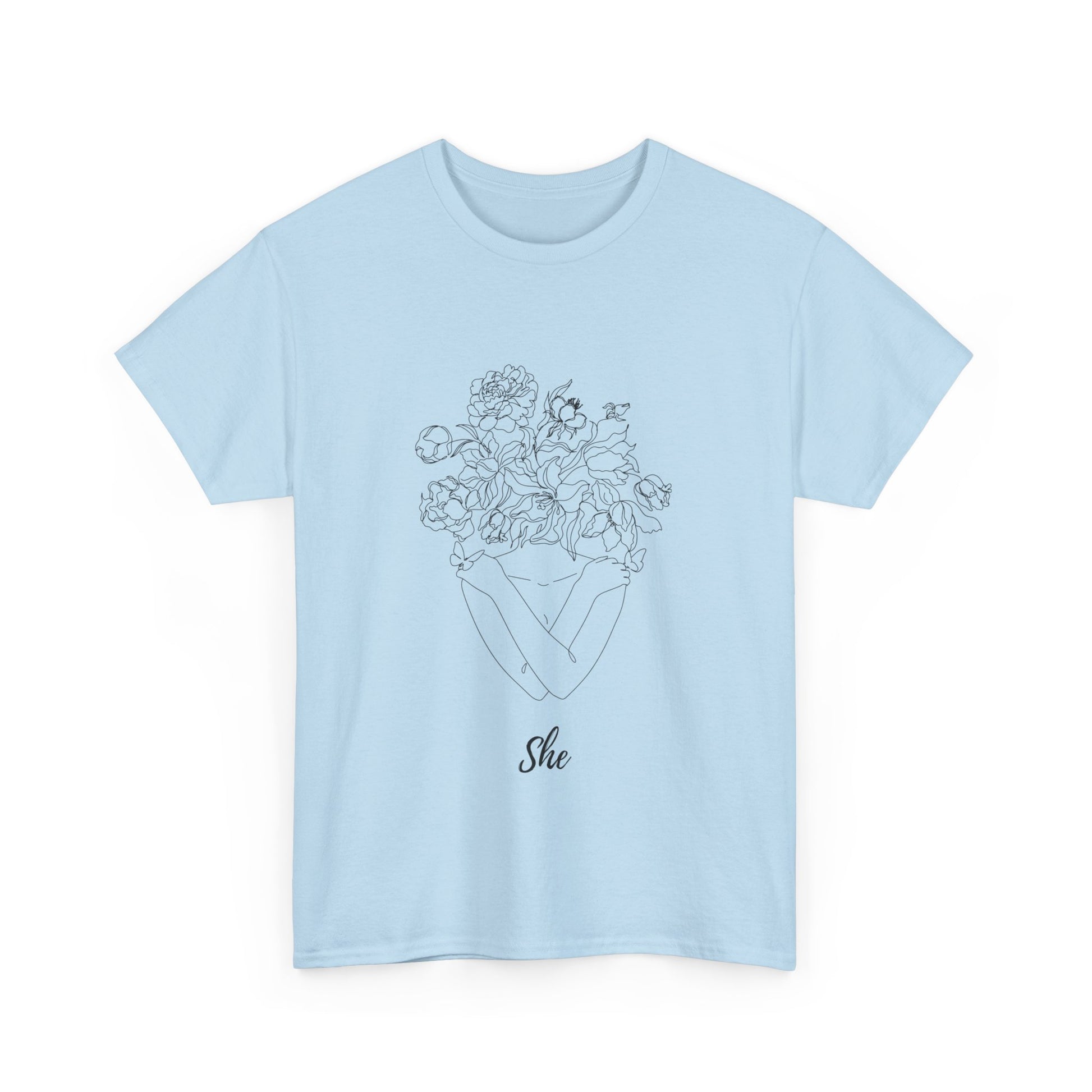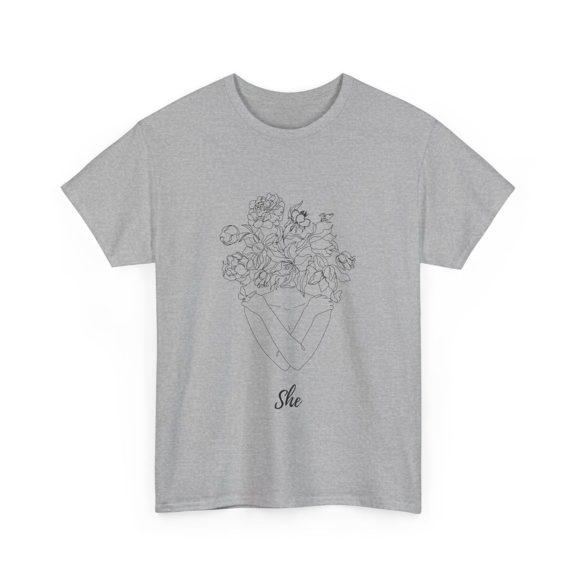 SHE Floral Love Unisex Heavy Cotton Tee, Casual T-Shirt, Gift for Her, Summer Fashion, Relaxed Fit Tee
