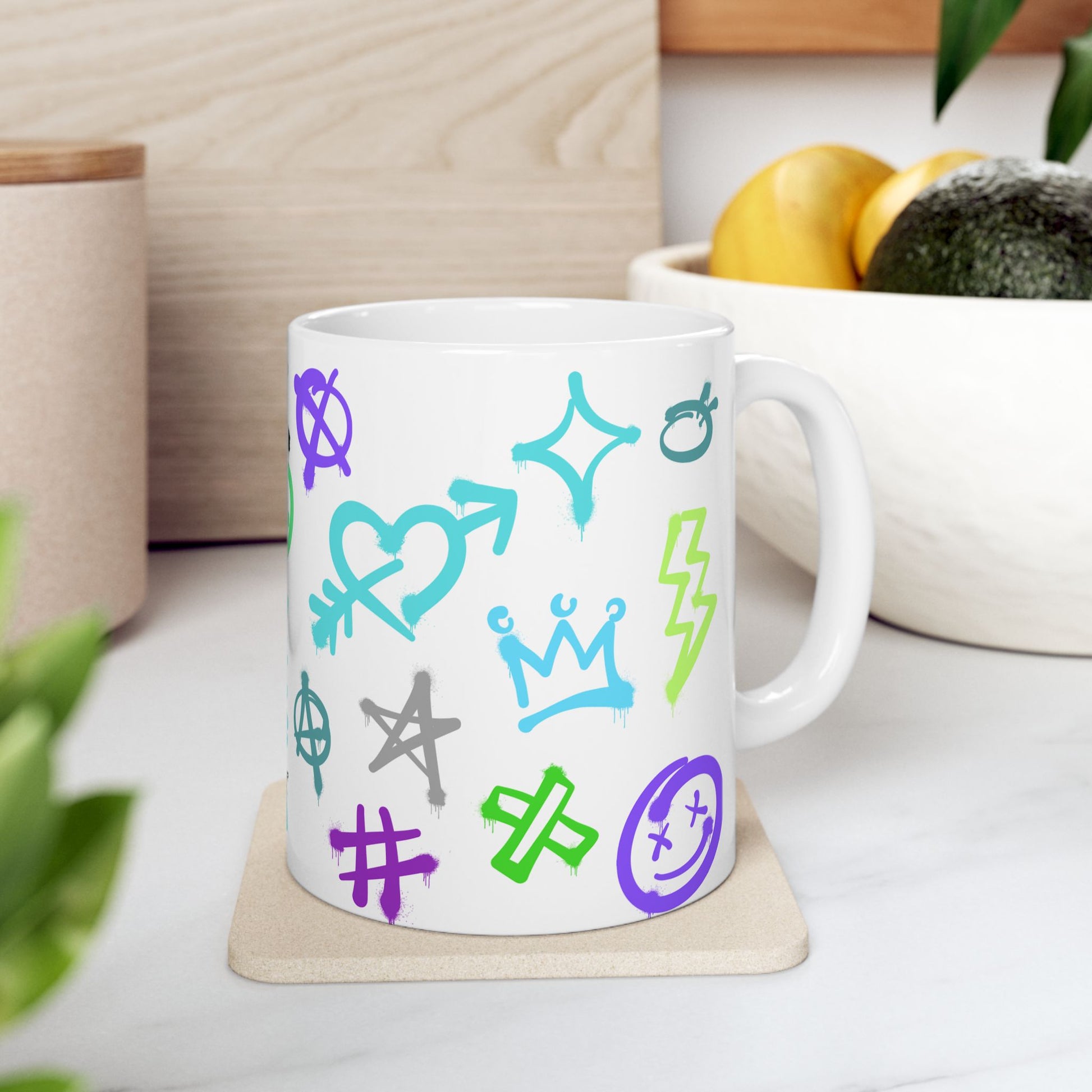 SMILE Vibrant Graffiti Ceramic Mug, Art Mug, Unique Gift, Inspirational Mug, Coffee Cup, Fun Drinkware