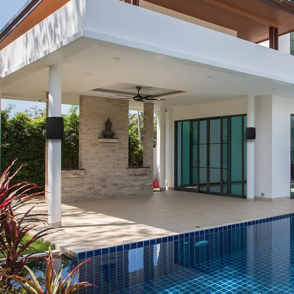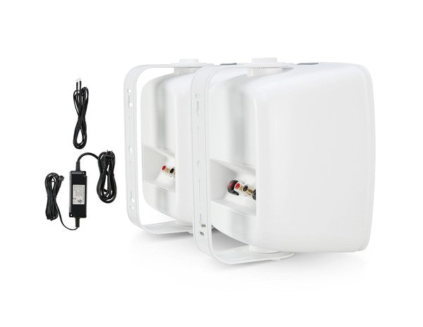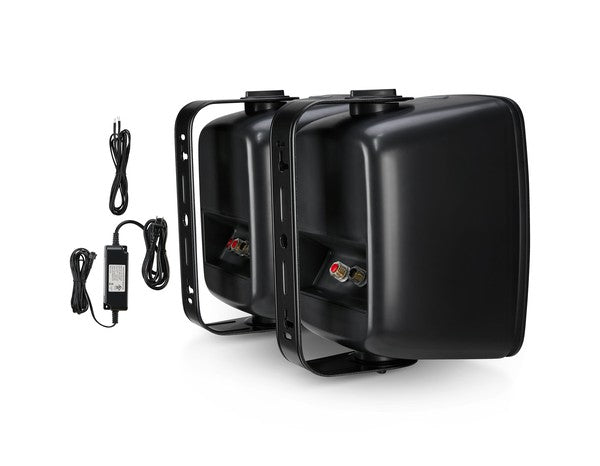 Powerful amplification fills backyards or pool areas with high-fidelity sound all while controlling the volume from Bluetooth-enabled devices along with other functions from the included remote