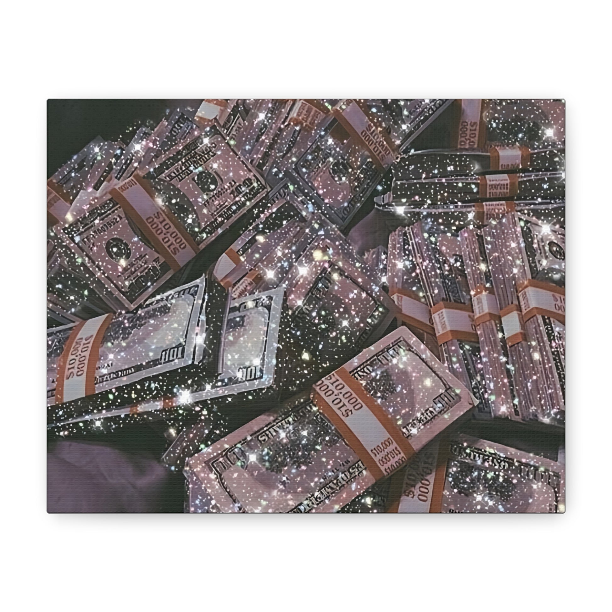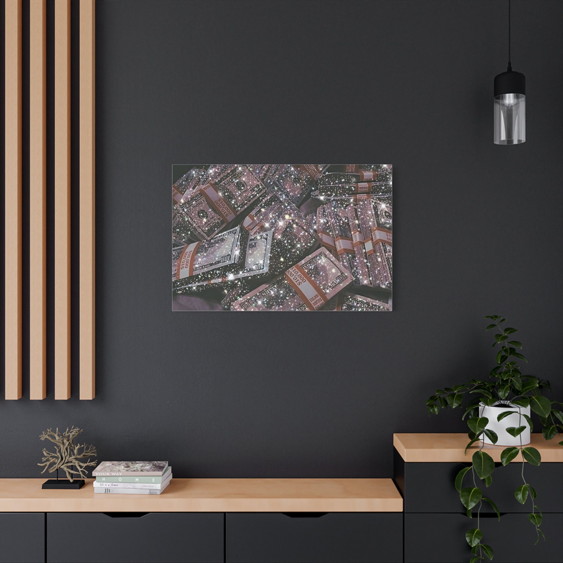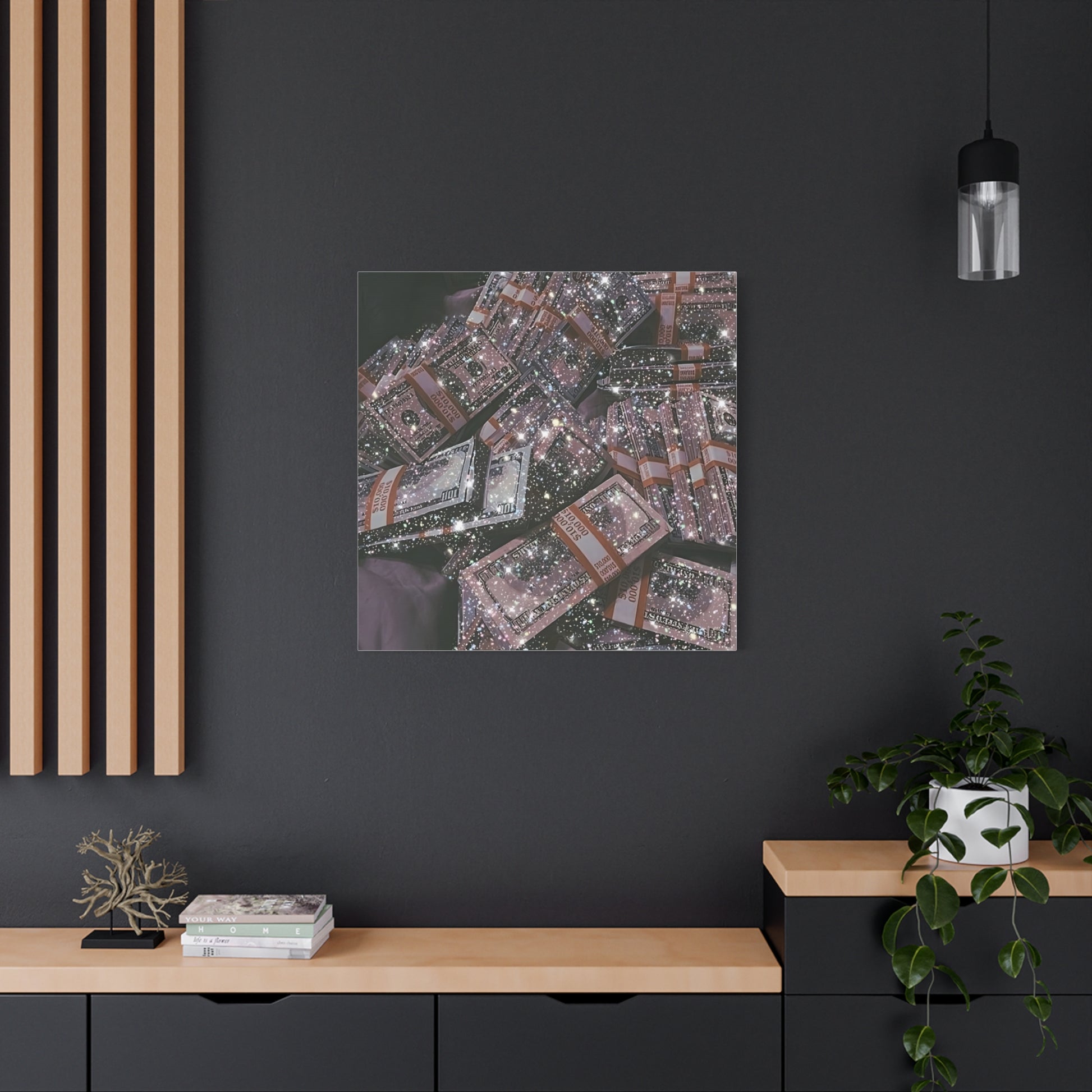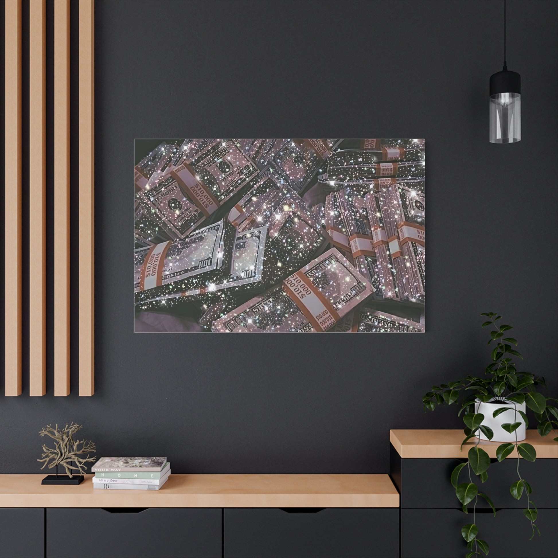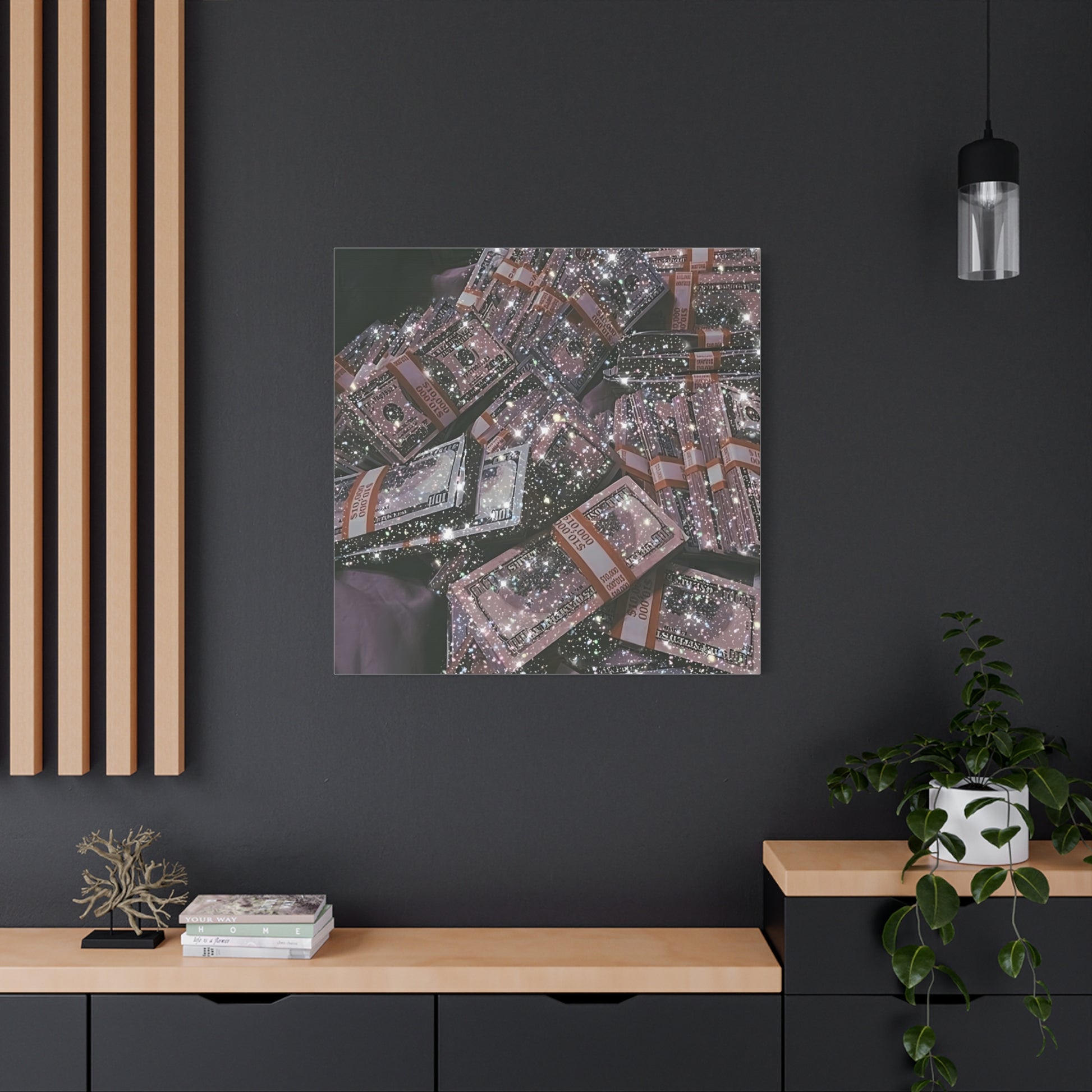 Sparkling Money Canvas Art, Glittery Wall Decor for Home, Modern Art Piece, Gift for Art Lovers, Chic Office Decor, Unique Wall Hanging