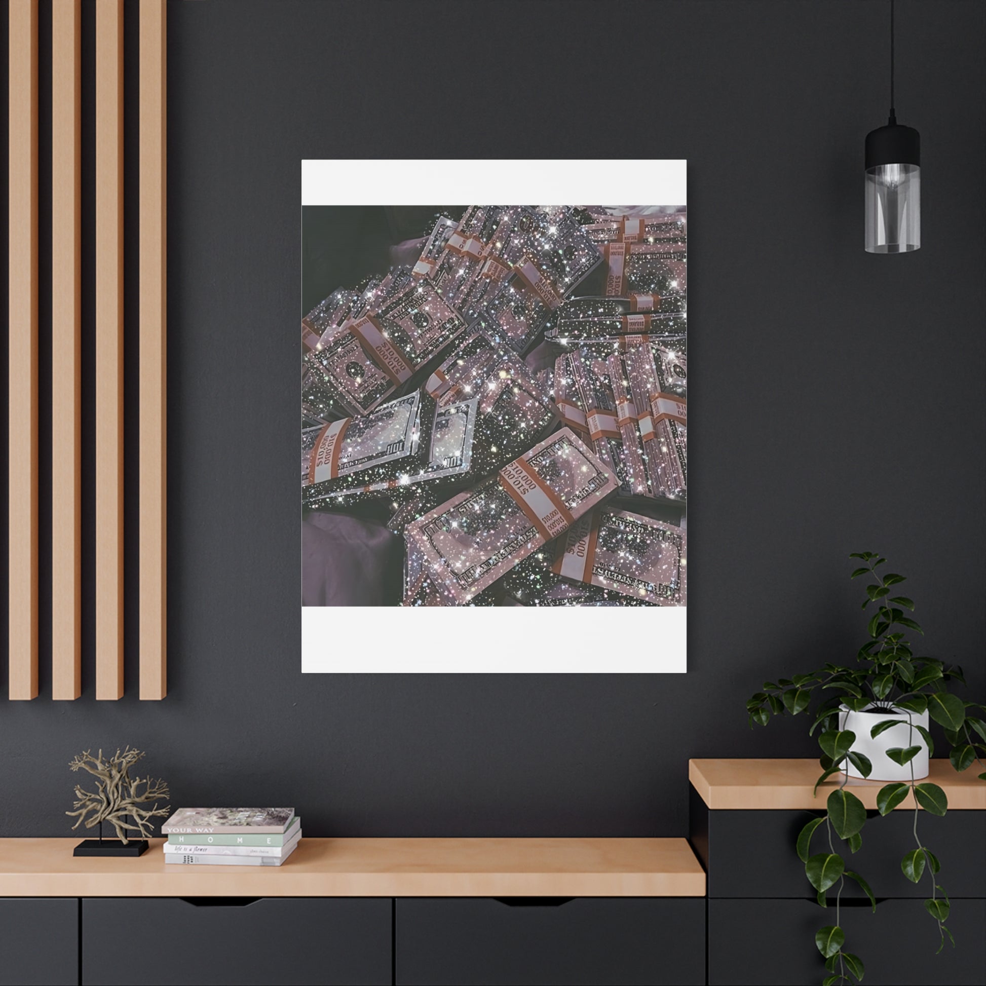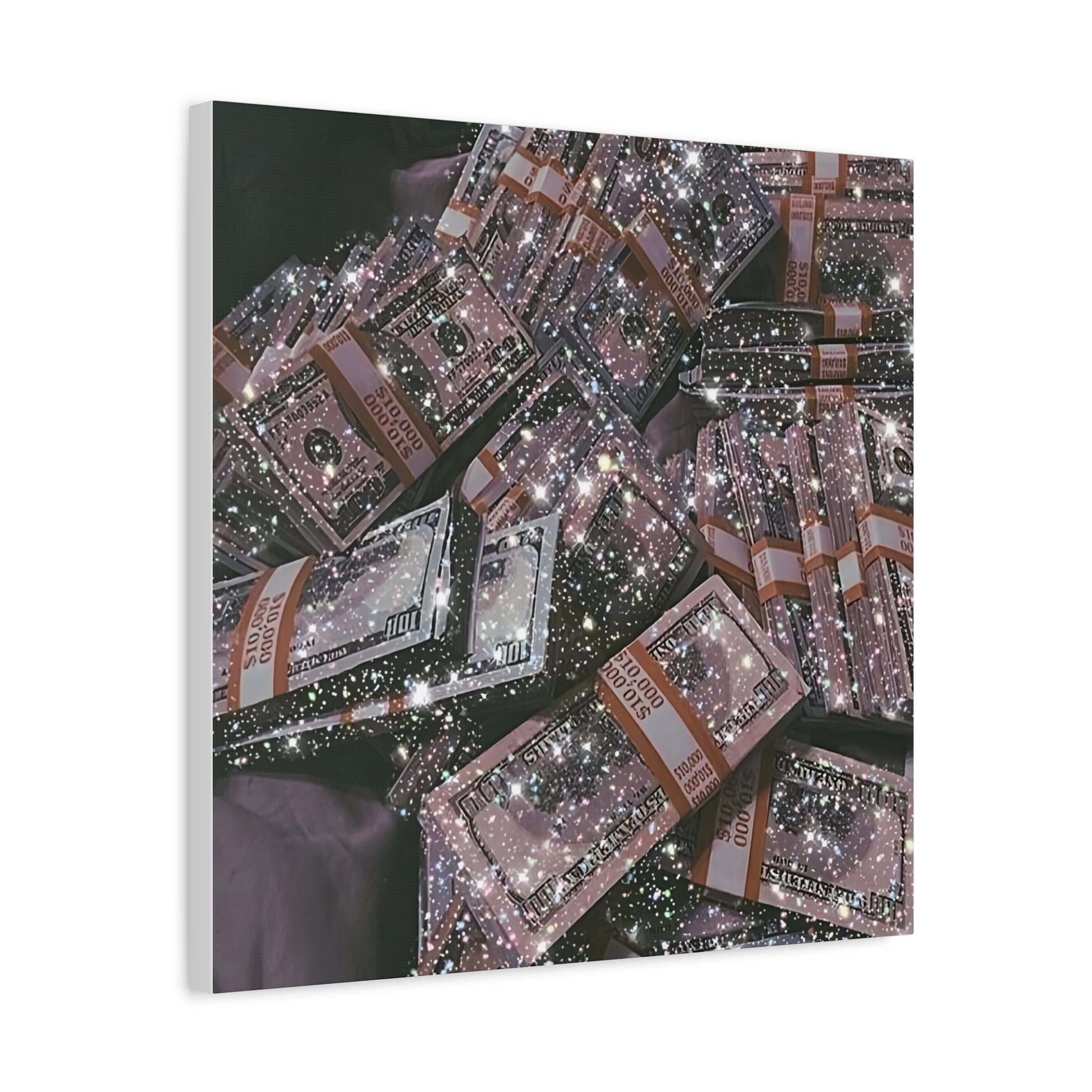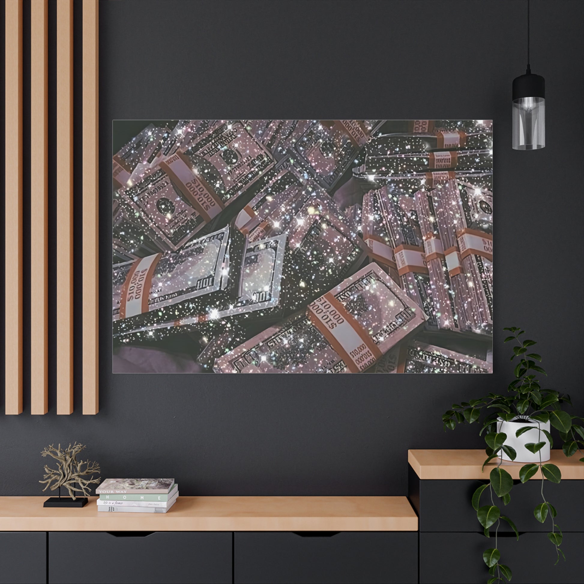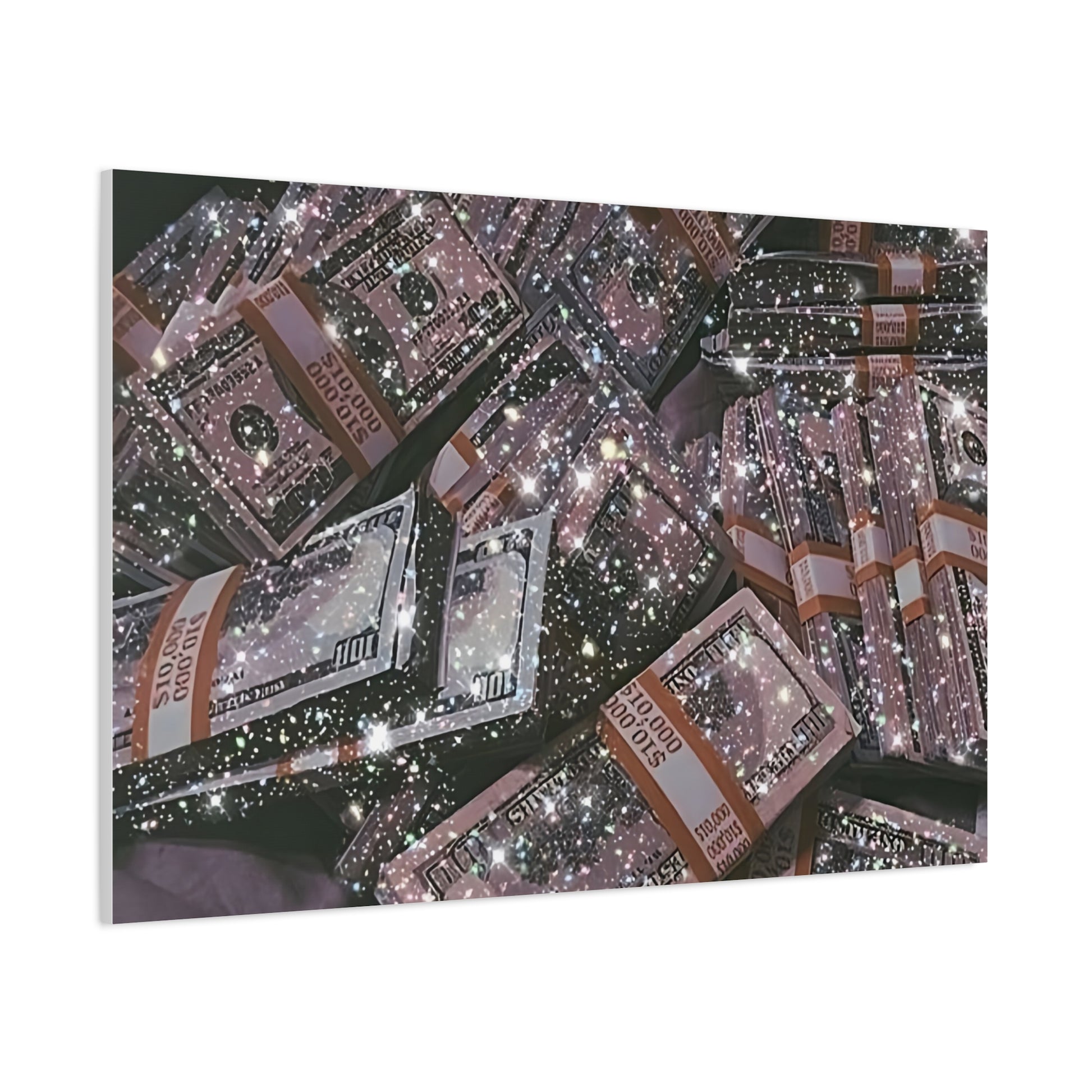 Sparkling Money Canvas Art, Glittery Wall Decor for Home, Modern Art Piece, Gift for Art Lovers, Chic Office Decor, Unique Wall Hanging