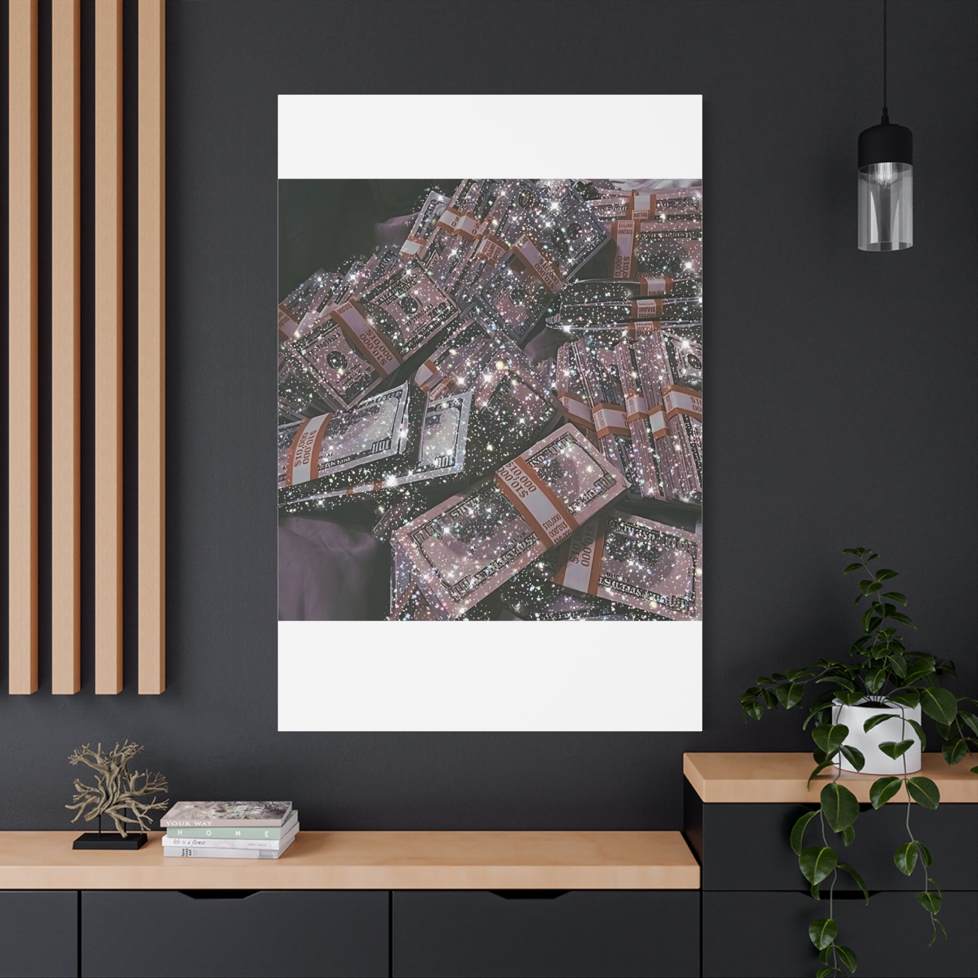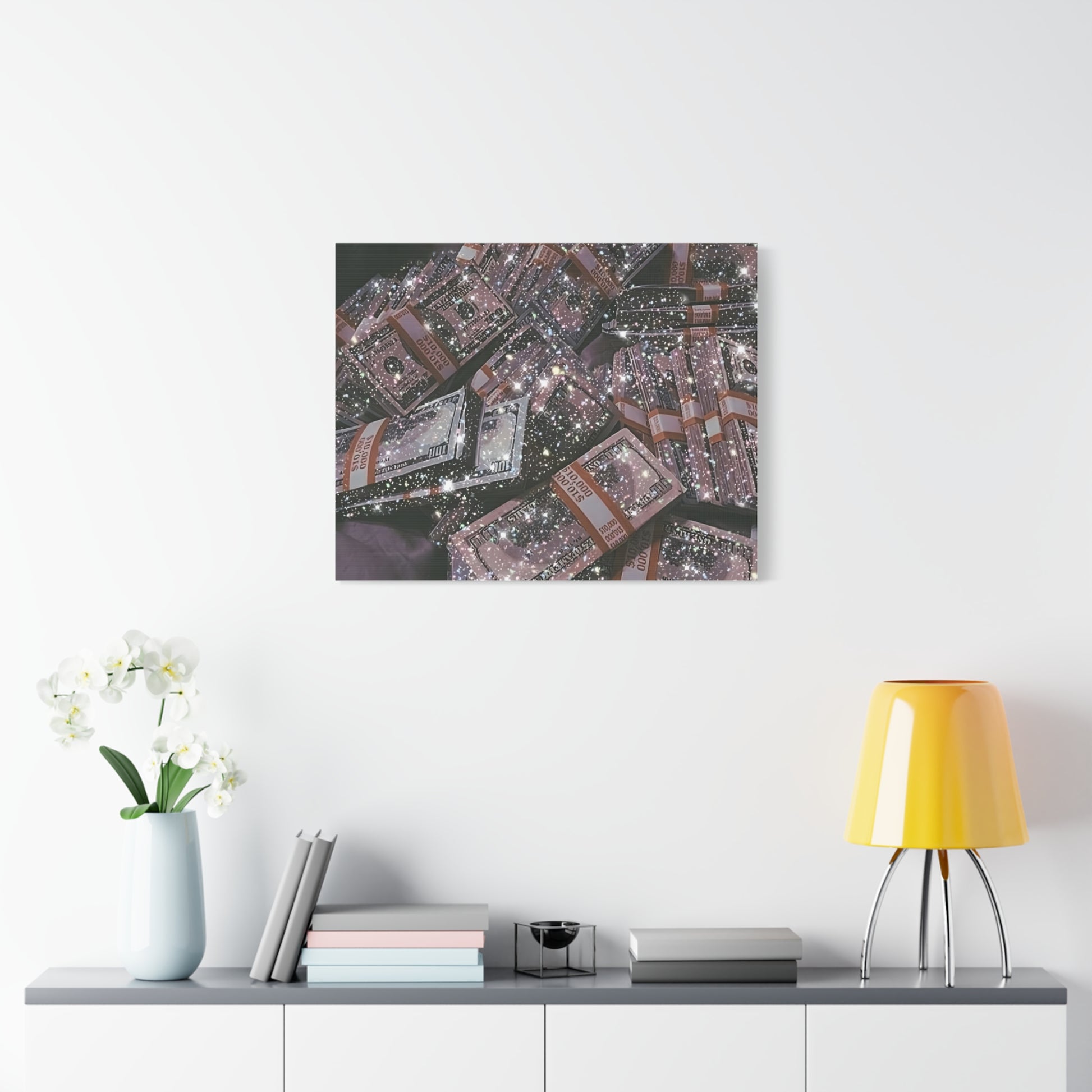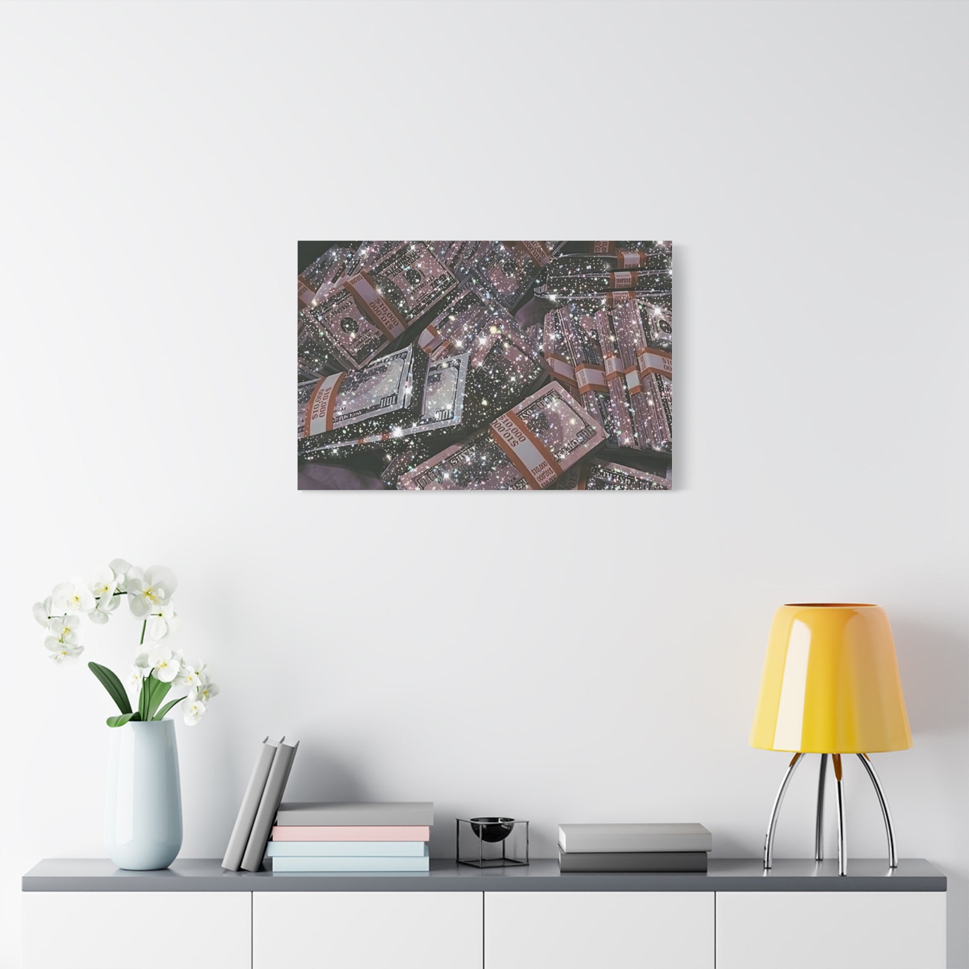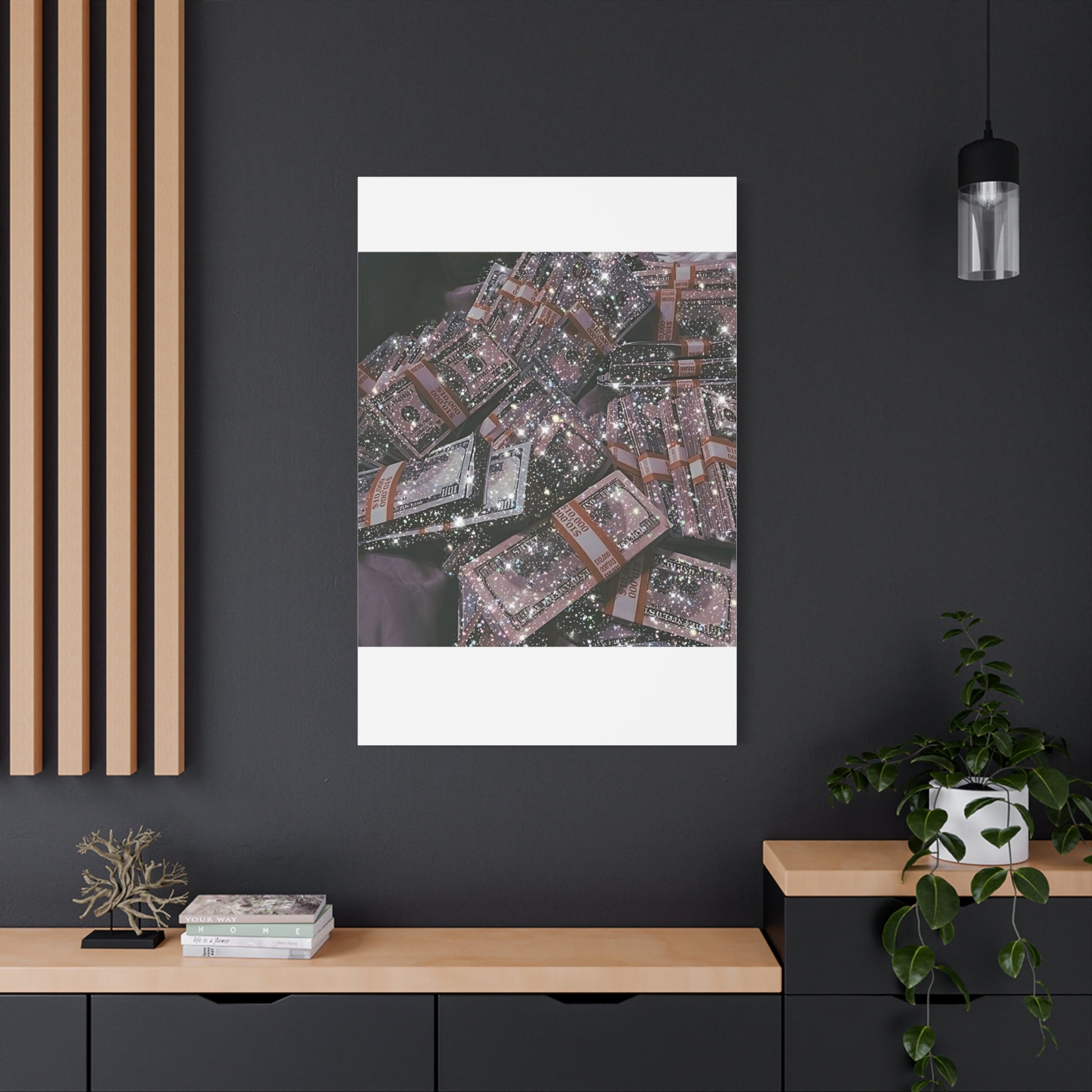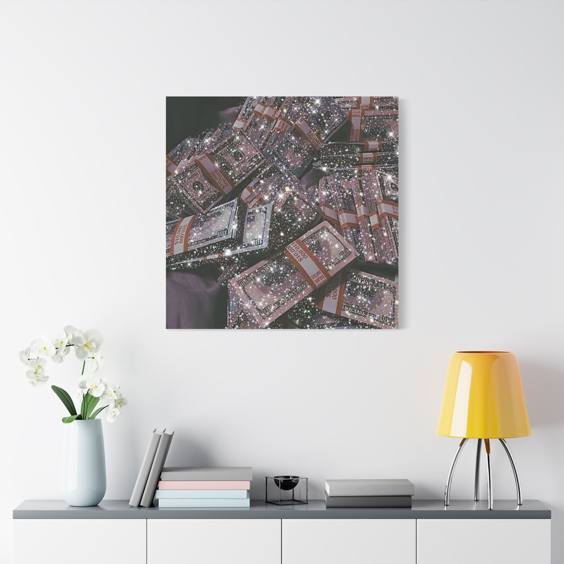 Sparkling Money Canvas Art, Glittery Wall Decor for Home, Modern Art Piece, Gift for Art Lovers, Chic Office Decor, Unique Wall Hanging
