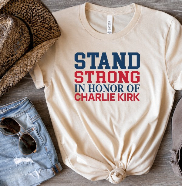 Stand Strong in honor of Charlie Kirk Boutique Graphic Top Tee