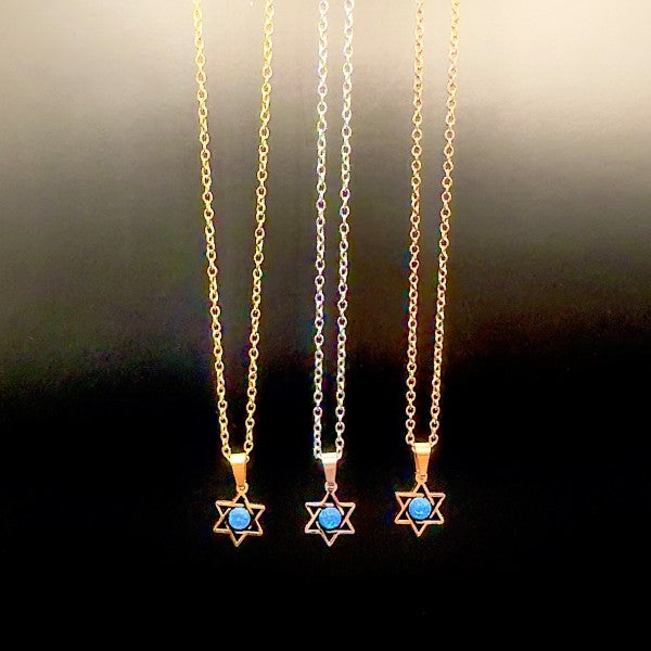 Star of David Necklace with Blue Opal