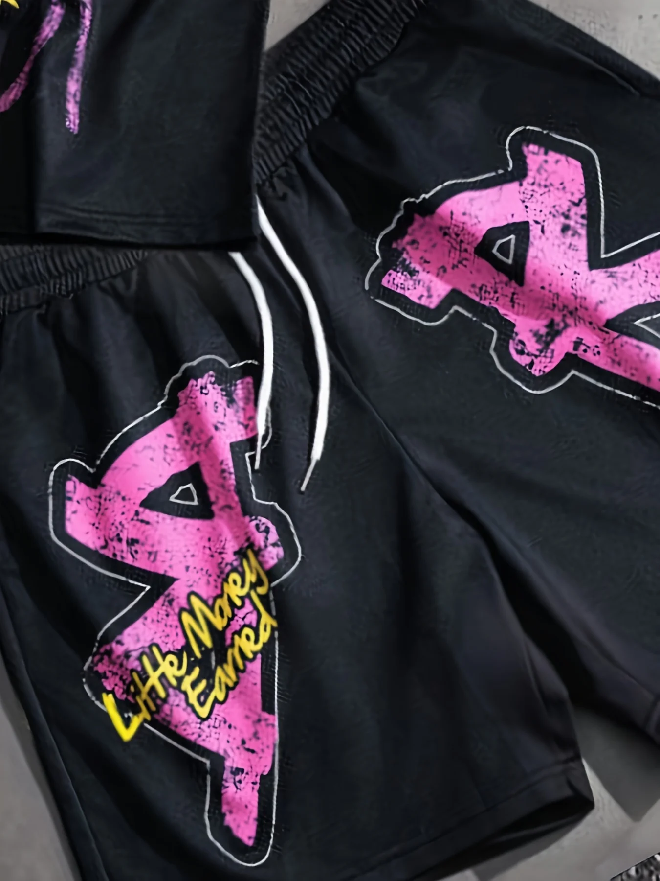 Summer Men's Graffiti Print T‑Shirt & Shorts Set – High Street Style, All-Day Comfort