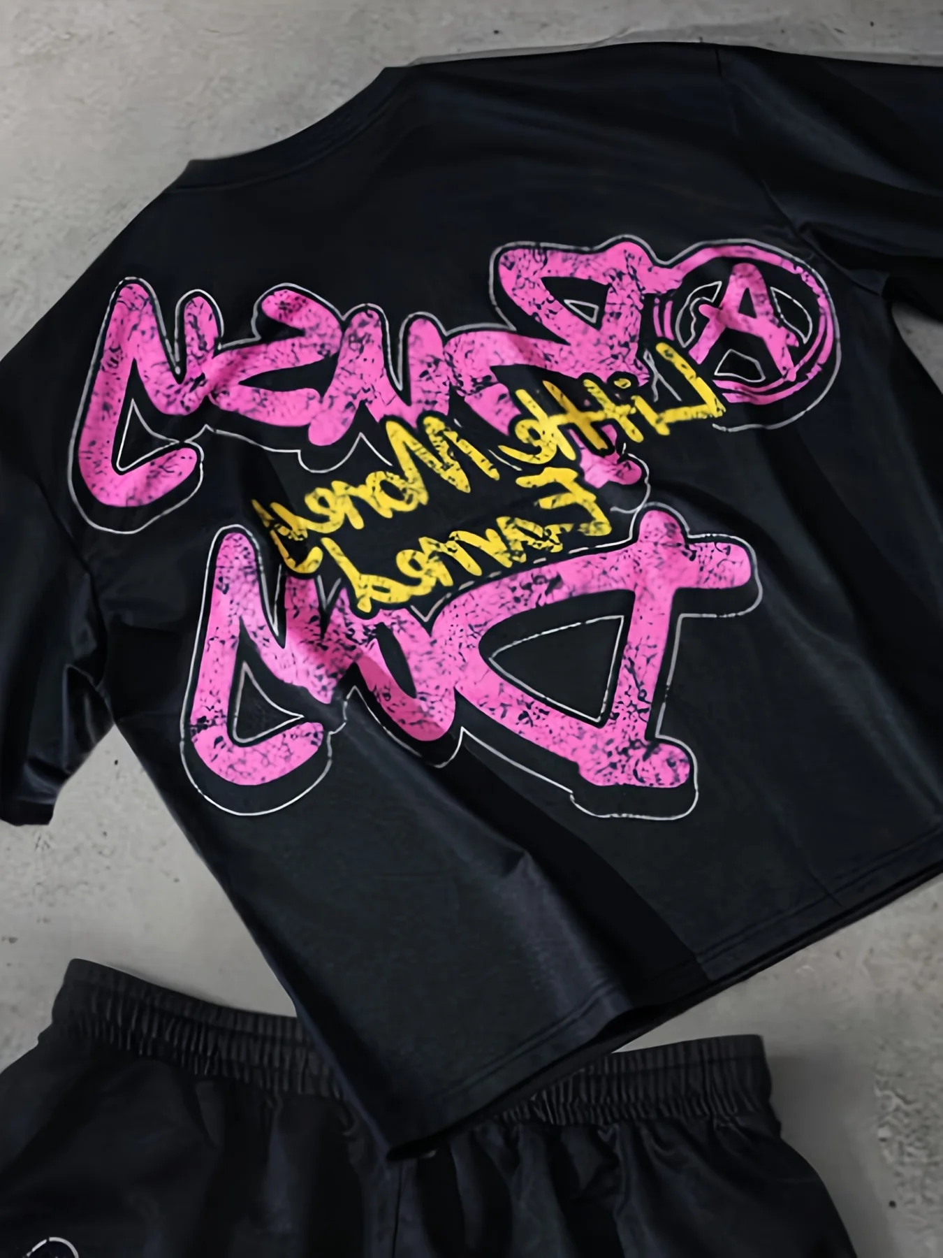 Upgrade your summer rotation with a set that combines street style, comfort, and personality in one easy outfit. Add this graffiti printed T‑shirt and shorts set to your cart now and step out with confidence on every sunny day.