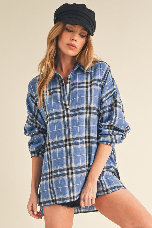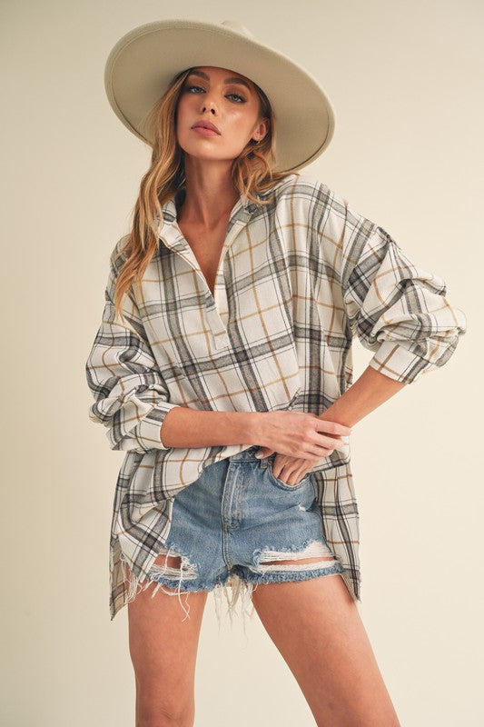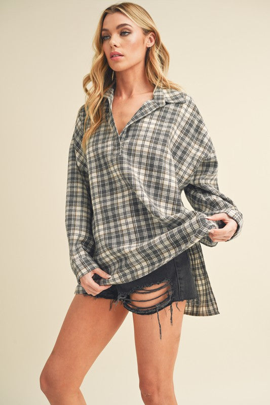 Meet your newest wardrobe must-have - our Tamra pullover Shirt. She is featured in a soft plaid with a relaxed fit but elevated in style. Pair with tailored pants and heels or denim and sneakers for ultimate versatility. A shirt that effortlessly takes you from chic to casual.