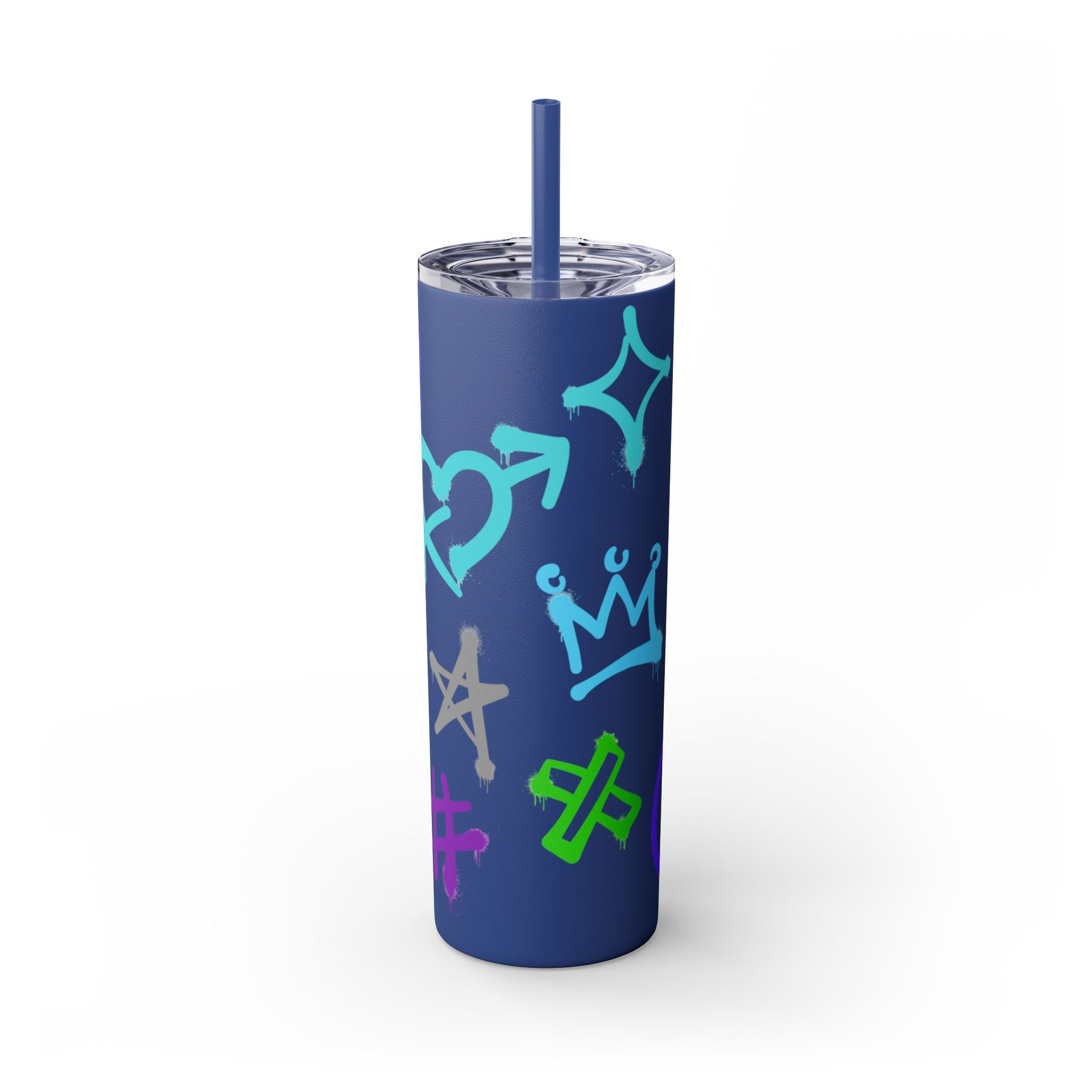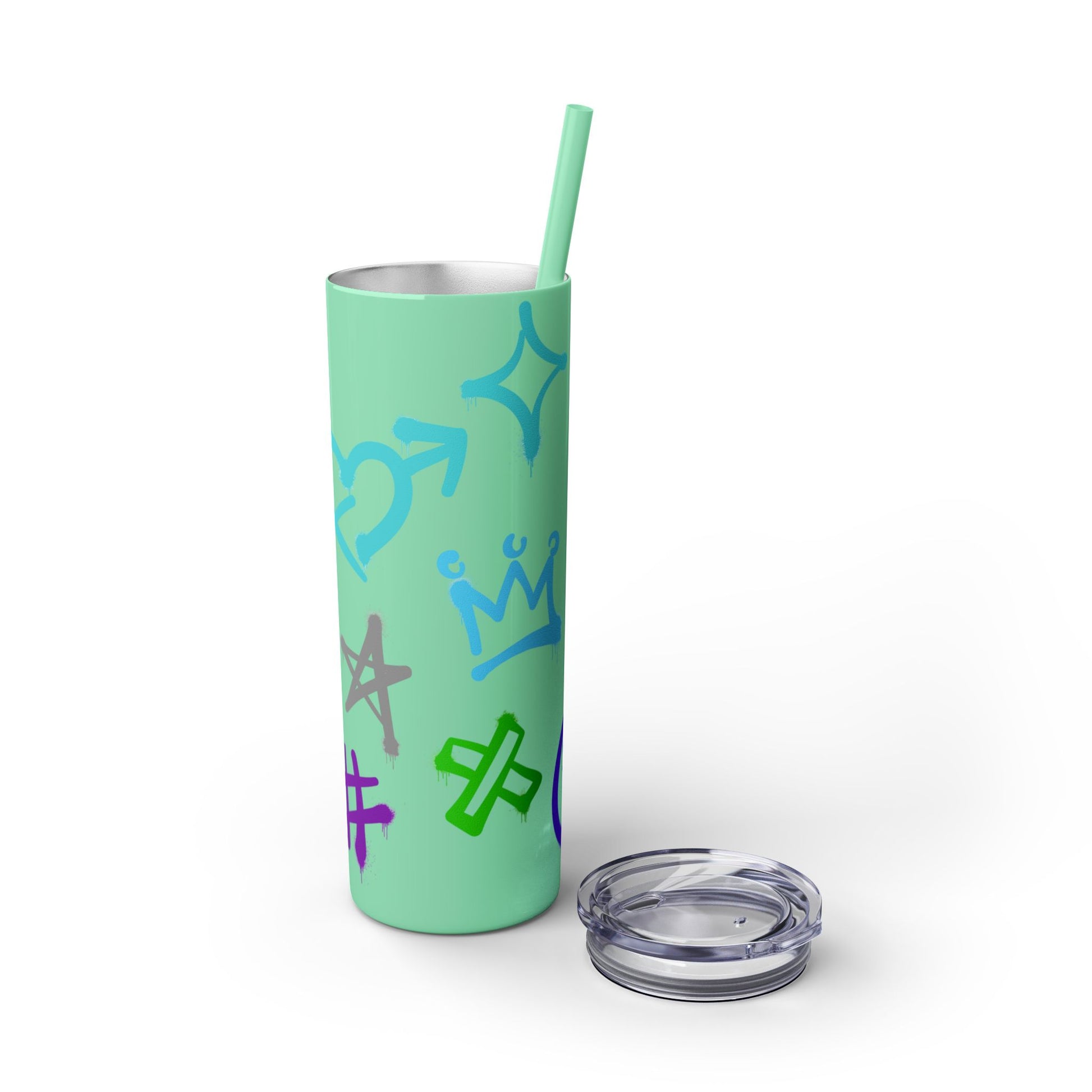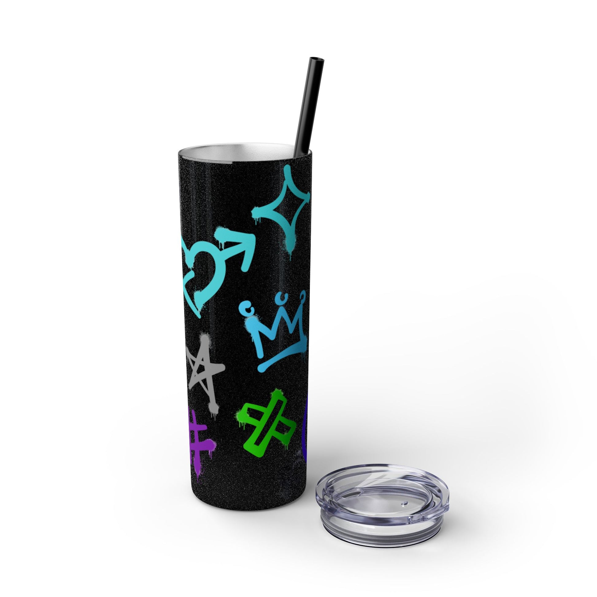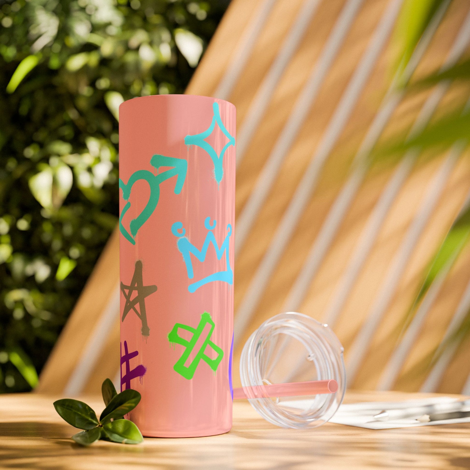 Trendy Skinny Tumbler with Straw, 20oz | Unique Graffiti Style Drinkware for Teens, Gifts, Parties, and Everyday Use