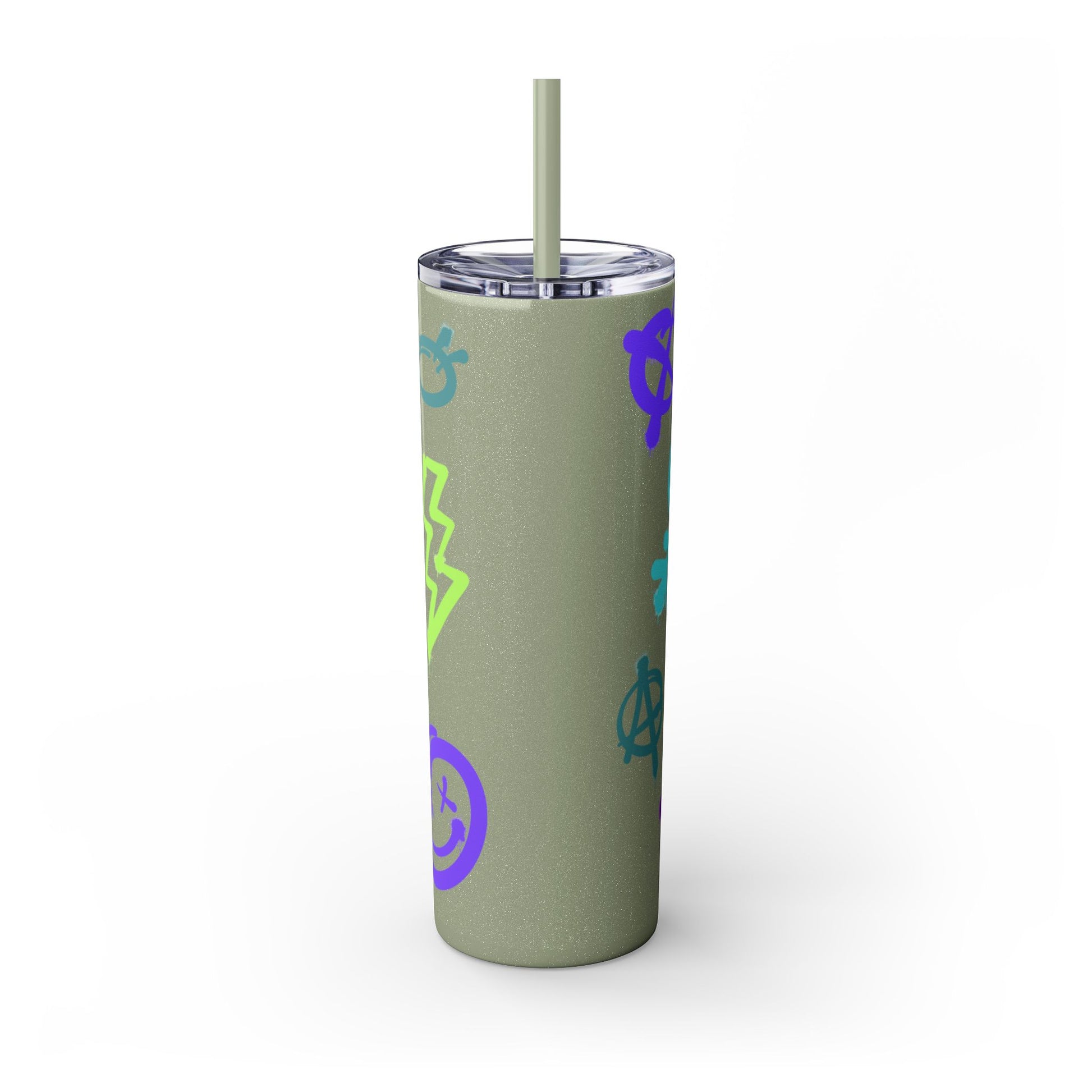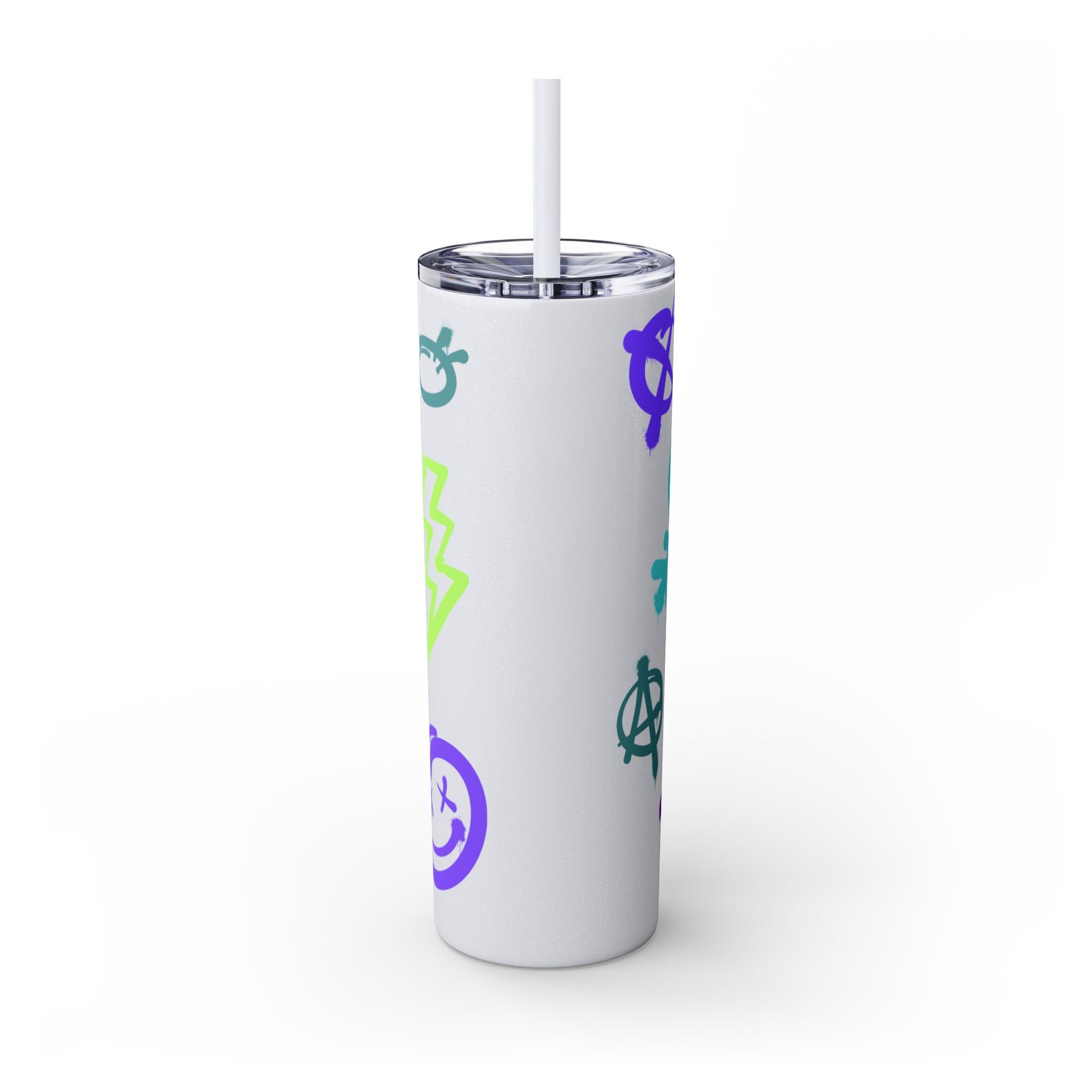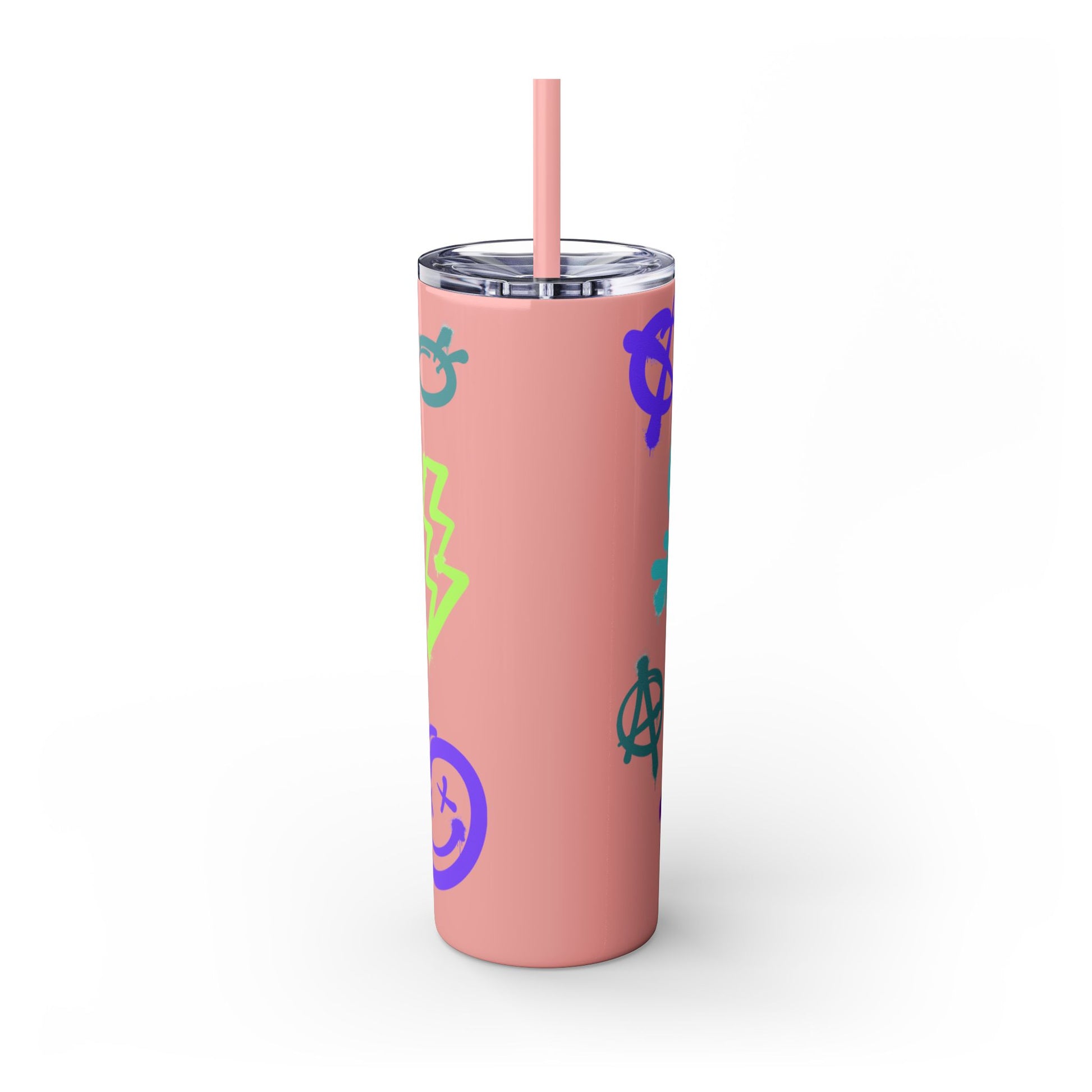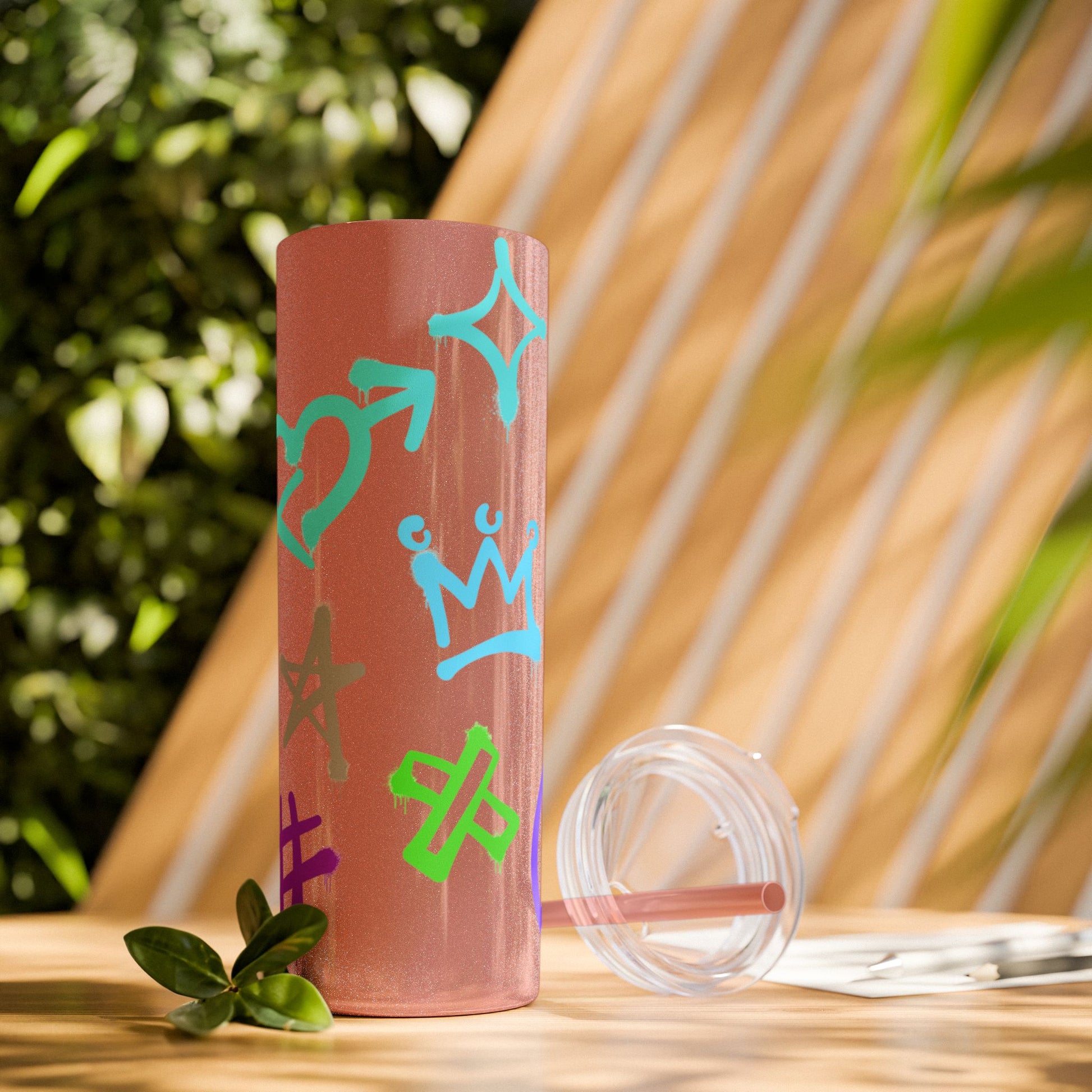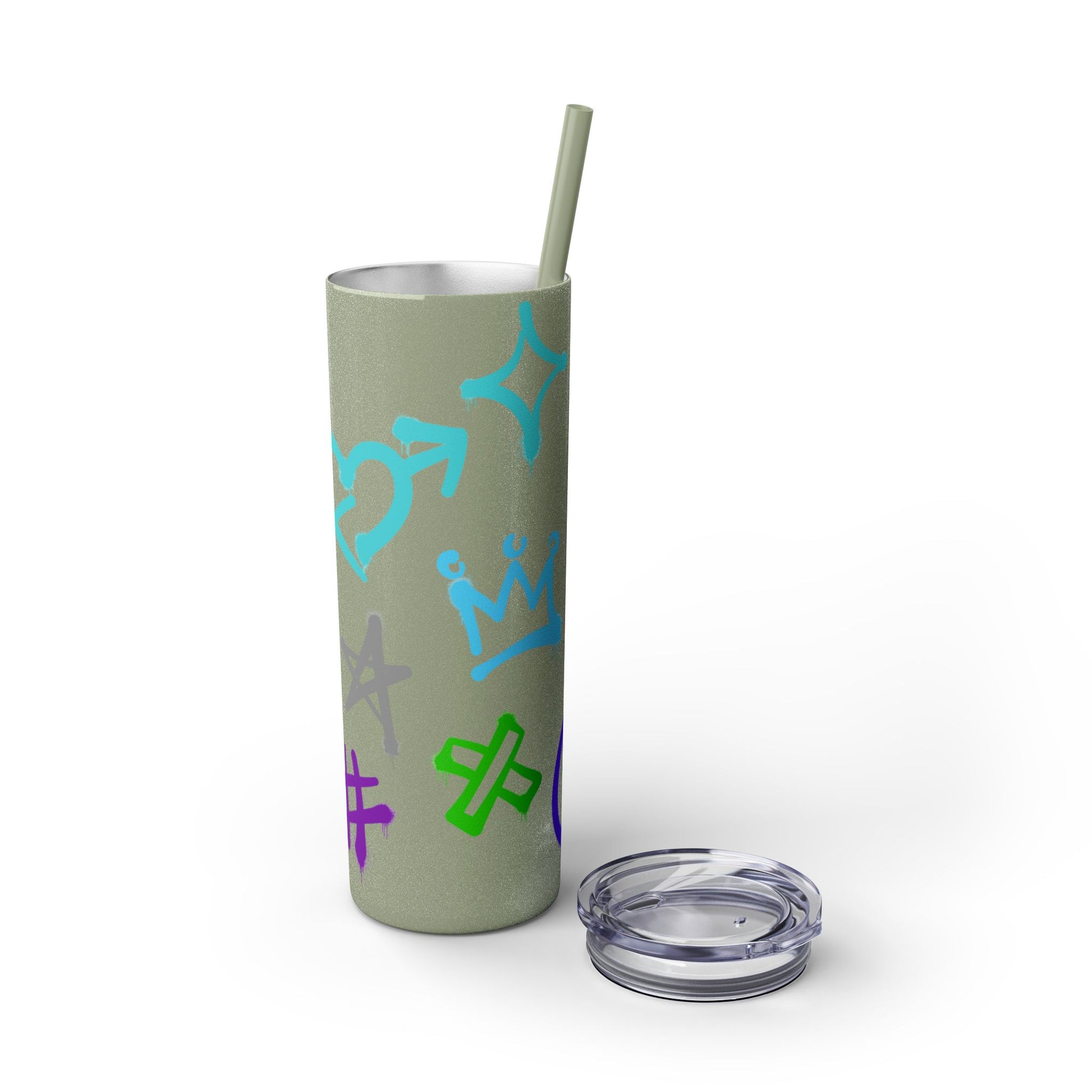 Trendy Skinny Tumbler with Straw, 20oz | Unique Graffiti Style Drinkware for Teens, Gifts, Parties, and Everyday Use
