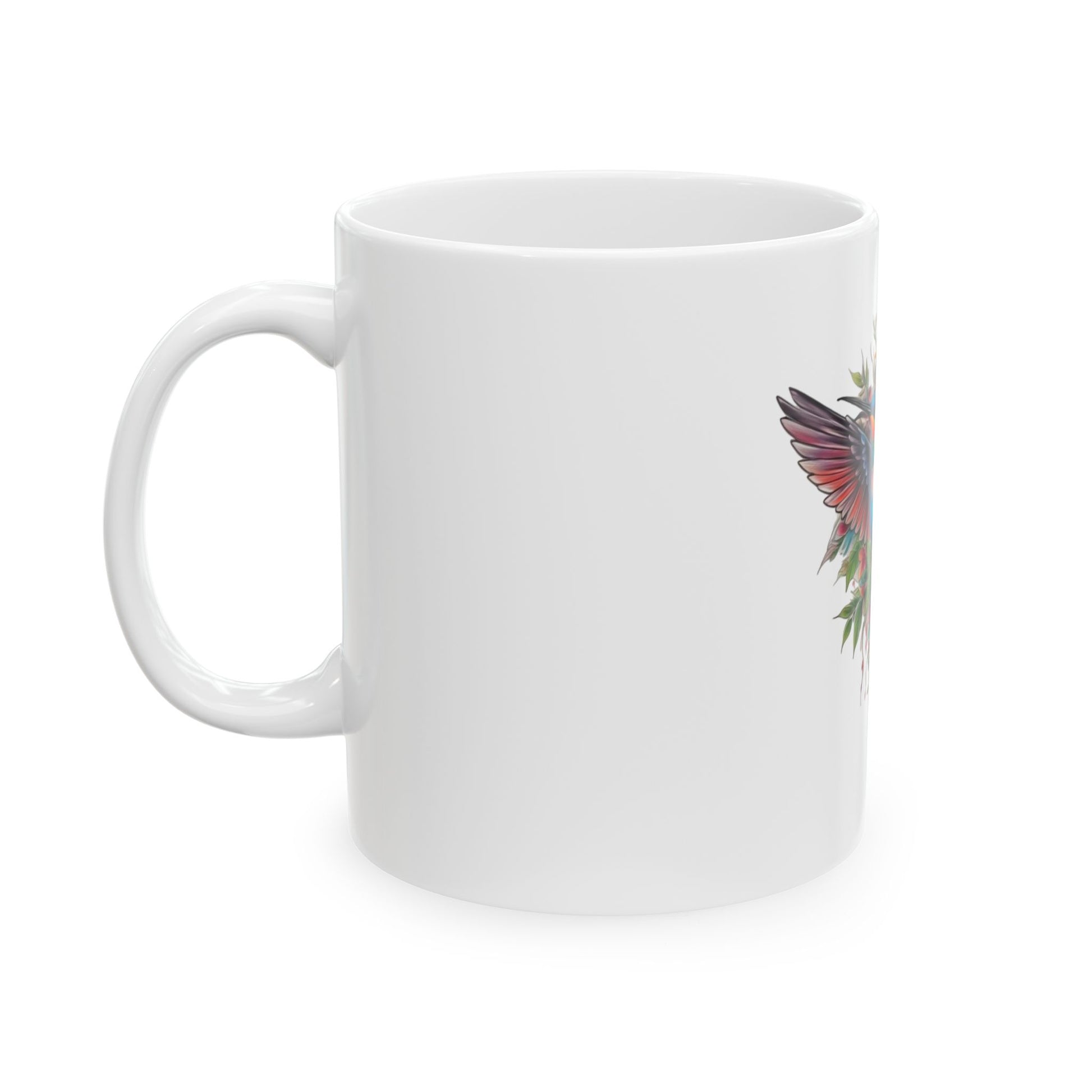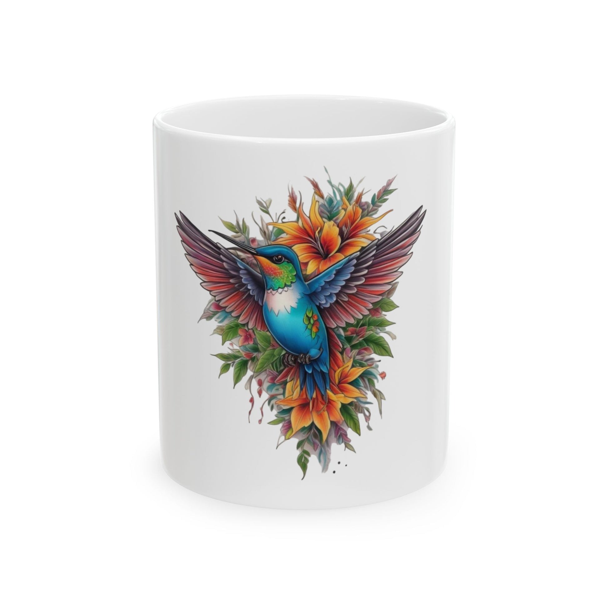 Vibrant Hummingbird Ceramic Mug, Colorful Coffee Cup, Nature Lover Gift, Floral Artwork Mug, Perfect for Tea and Coffee