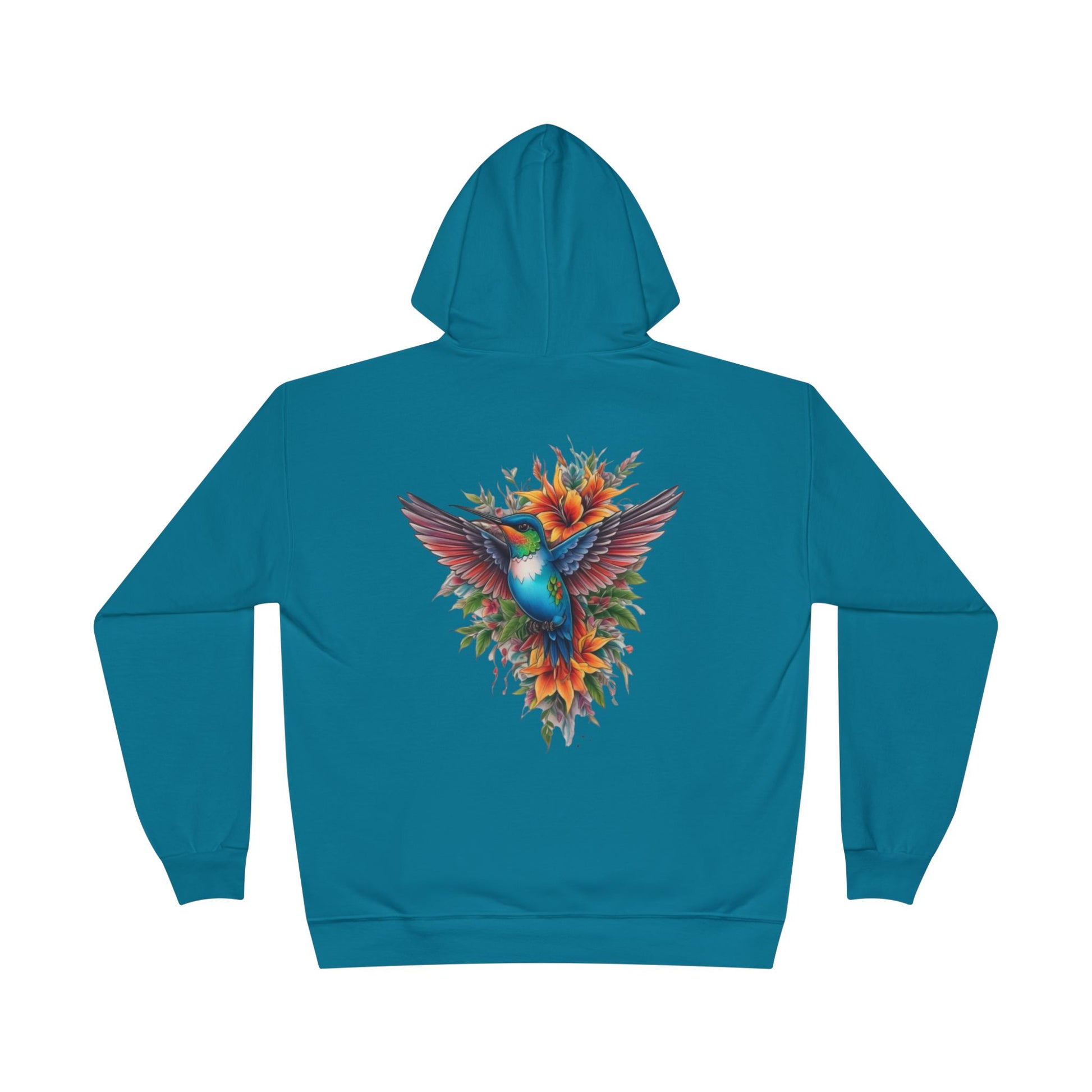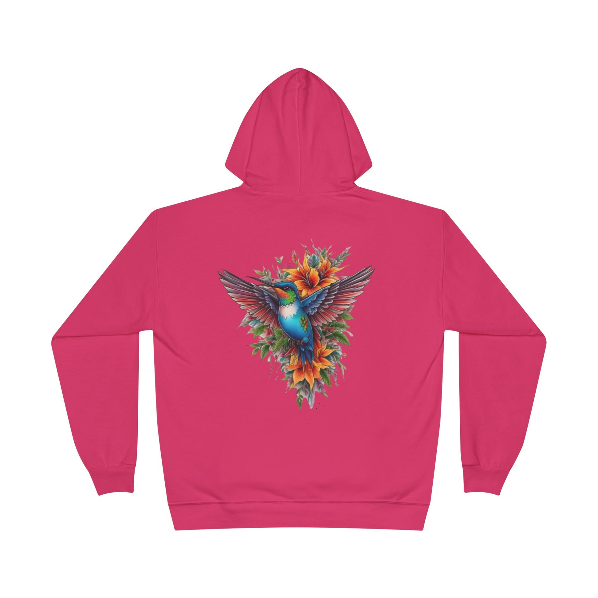 This Unisex EcoSmart® pullover hoodie sweatshirt combines comfort and style, perfect for everyday wear or cozy nights in. The vibrant design showcases a stunning hummingbird surrounded by beautifully colored flowers, adding a touch of nature's elegance to any outfit. Made with a medium-weight fabric, this hoodie provides warmth without excessive bulk, making it an ideal layer for chilly evenings or outdoor adventures. It's perfect for lovers of nature, art enthusiasts, or anyone who appreciates eco-friendly fashion. Gift it for holidays like Earth Day, birthdays, or simply to brighten someone's wardrobe! Whether you're lounging at home or heading out with friends, this hoodie is sure to become a beloved staple in your collection.