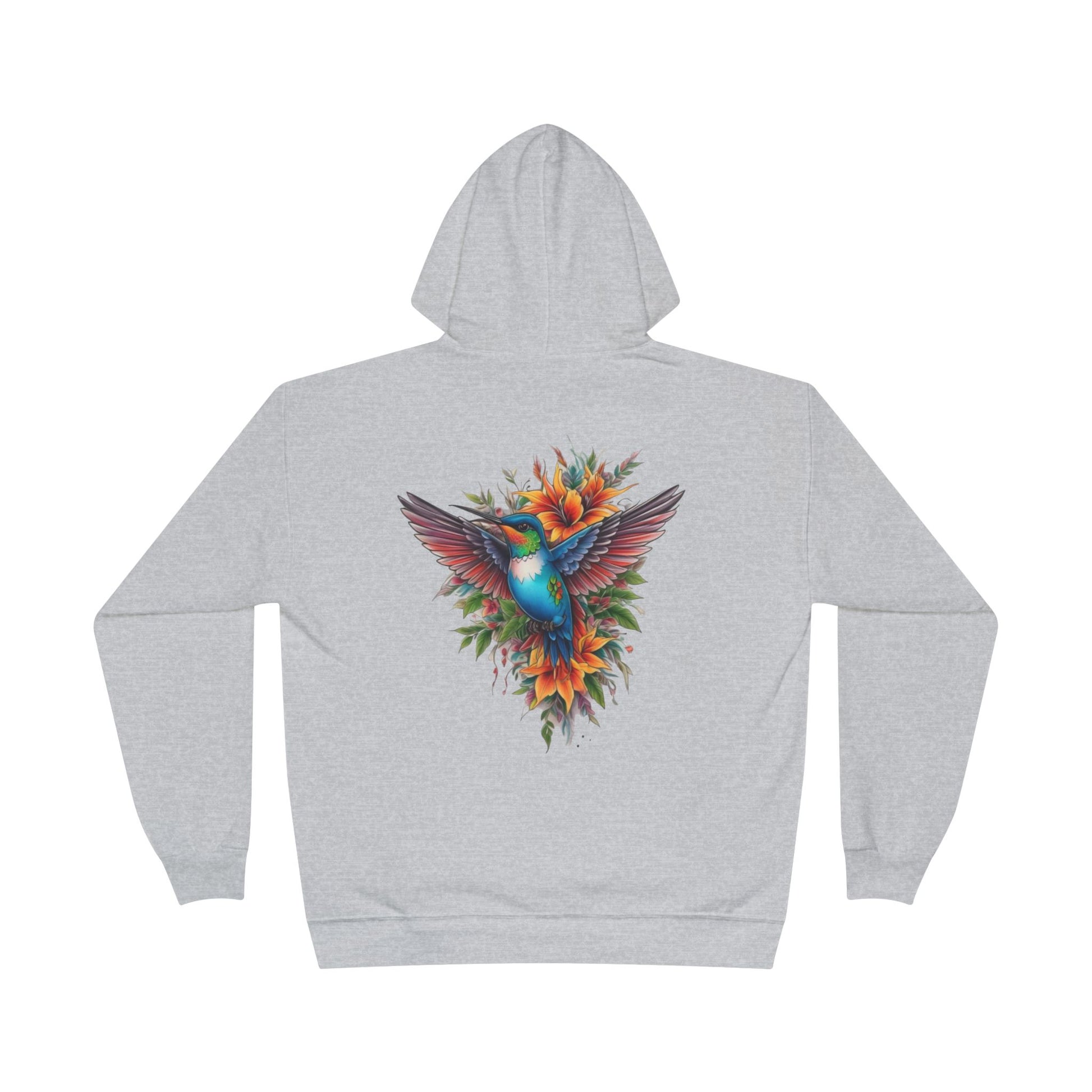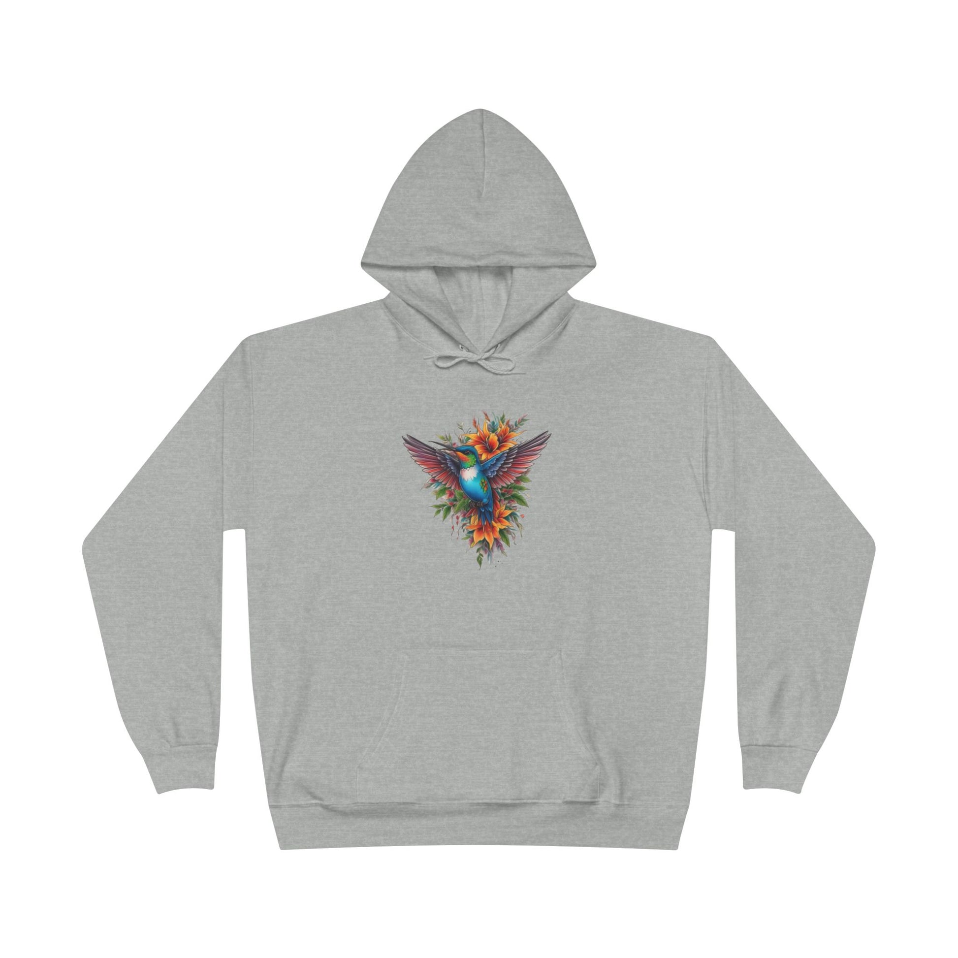 Vibrant Hummingbird Hoodie, Eco-Friendly Pullover, Perfect Gift for Nature Lovers, Spring Fashion, Unique Floral Design
