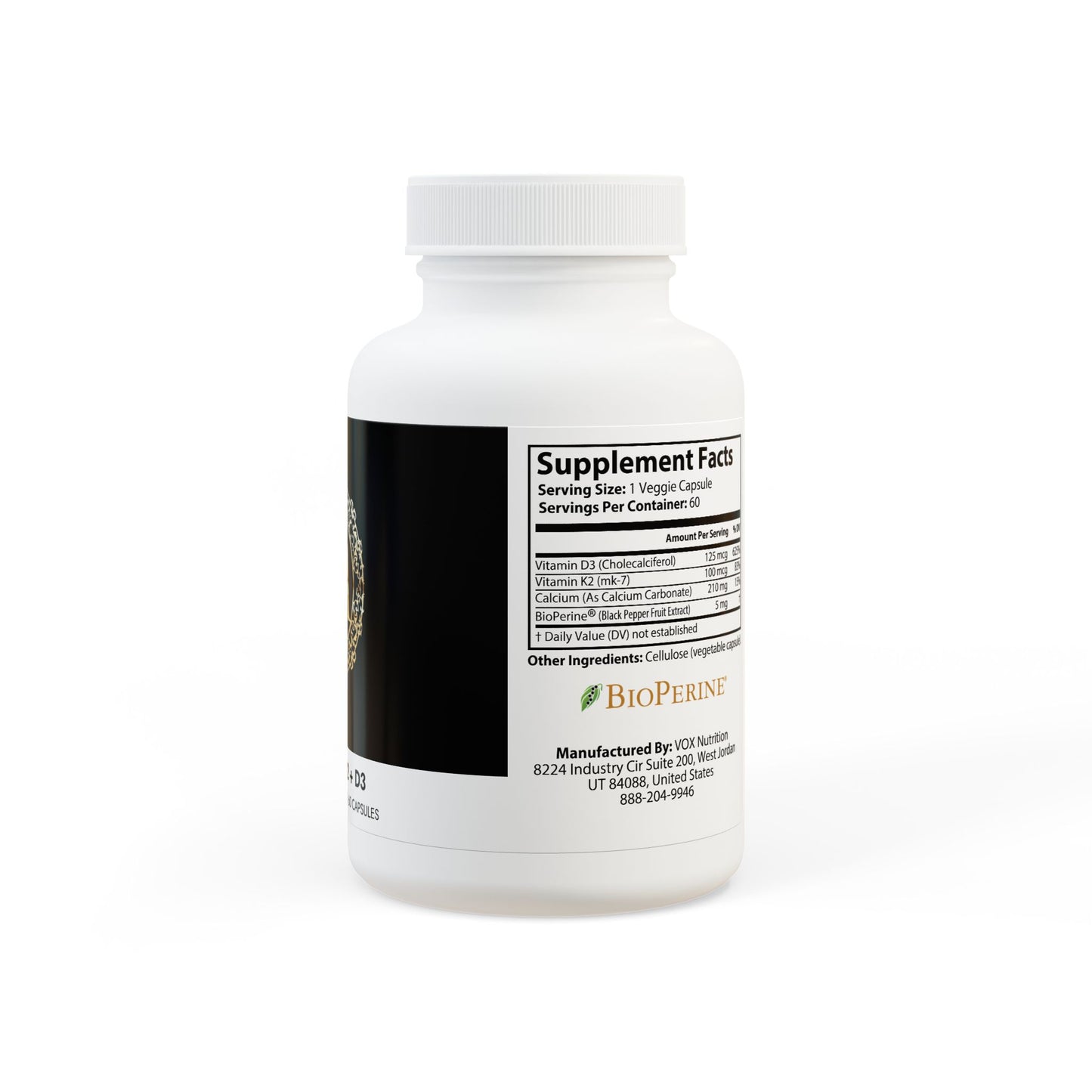 This Vitamin K2 and D3 Supplement is a perfect addition to any active lifestyle as it is synthesized to support exercise performance and enhance muscle function. Key ingredients include Vitamin D3, Vitamin K2, Calcium, and BioPerine® (Black Pepper Fruit Extract).