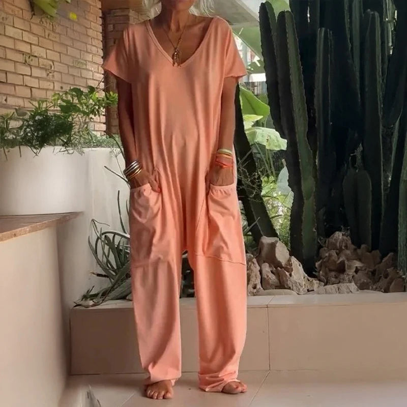 Slip into effortless style with this relaxed, street-chic romper. Designed for busy days and laid-back nights, this one-and-done outfit combines a loose, baggy fit with practical pockets and bold solid colors, so you can move freely, feel comfortable, and still look perfectly put-together.