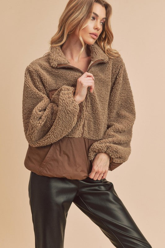 Part of our essential collection, this plush faux-fur half-zip pullover featuring fleece and nylon contrast trim is a timeless piece for your cold-weather wardrobe.