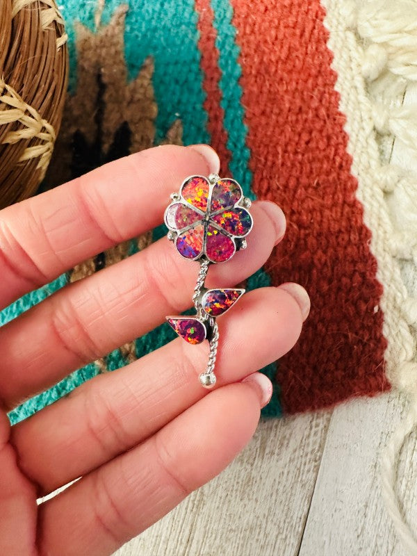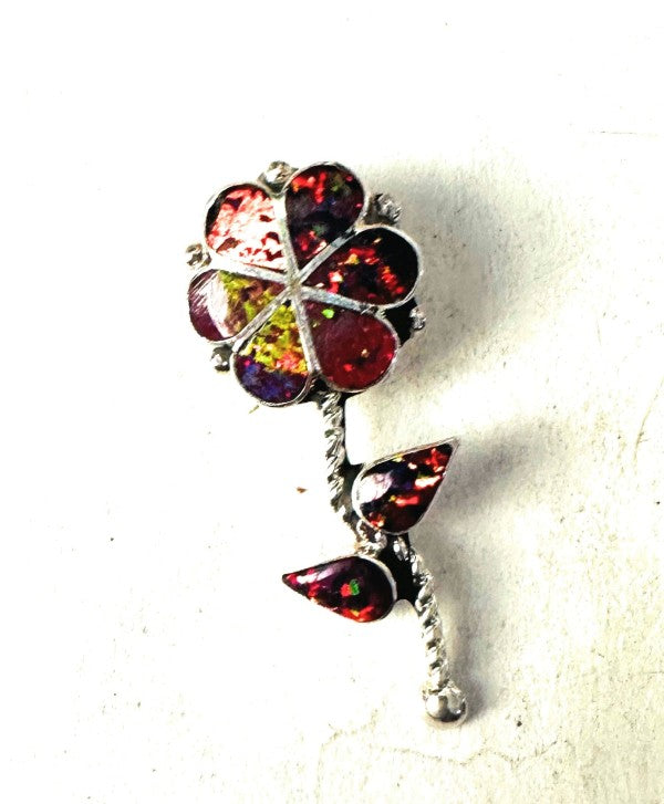 Zuni Opal & Sterling Silver Inlay Flower Pendant